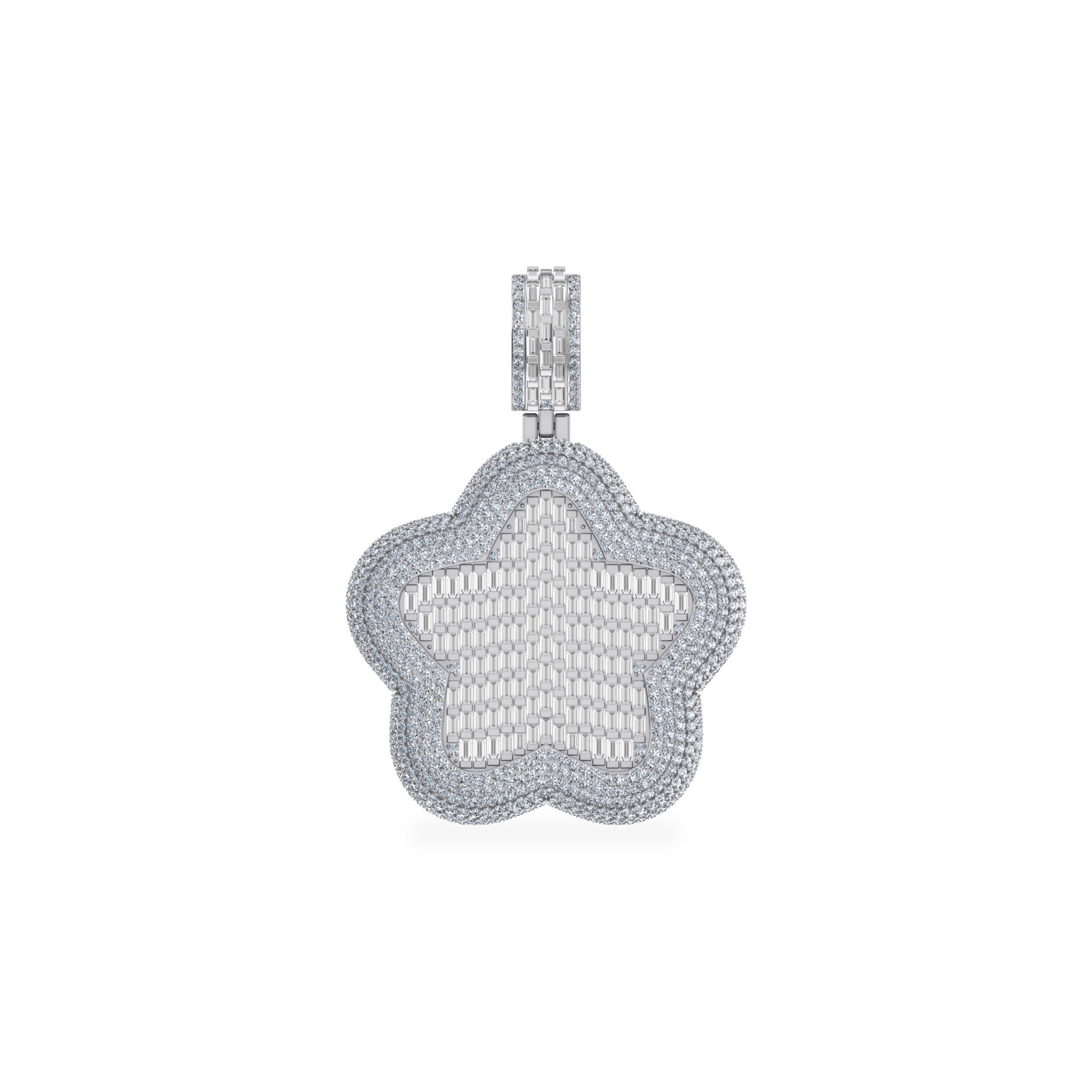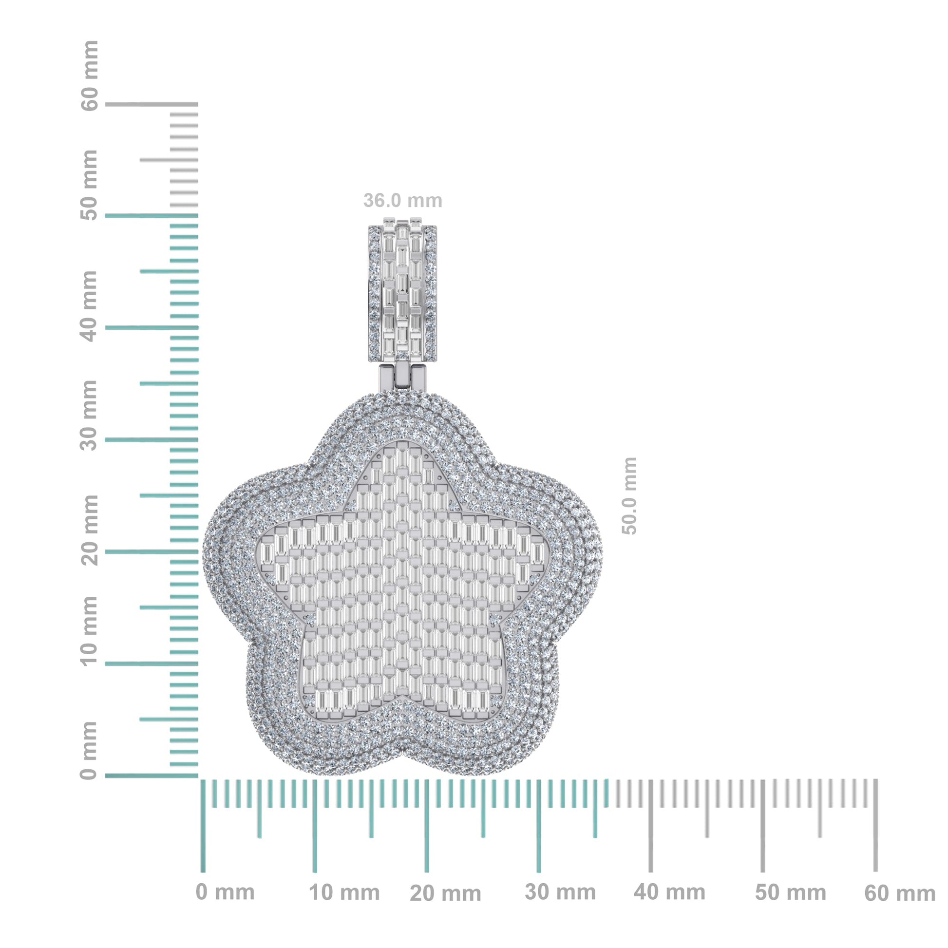 10K White Gold Round Baguette Diamond Star Designer Charm Pendant 3-3/4 Cttw