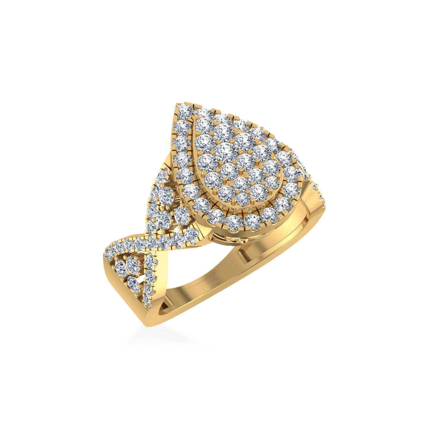 10K Yellow Gold Round Diamond Pear Shape Halo Designer Womens Ring SZ 7 1-3/8 Cttw
