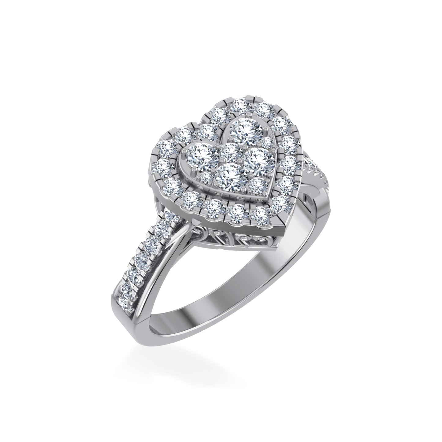 10K White Gold Round Diamond Heart Shape Halo Womens Ring SZ 7 1 Cttw
