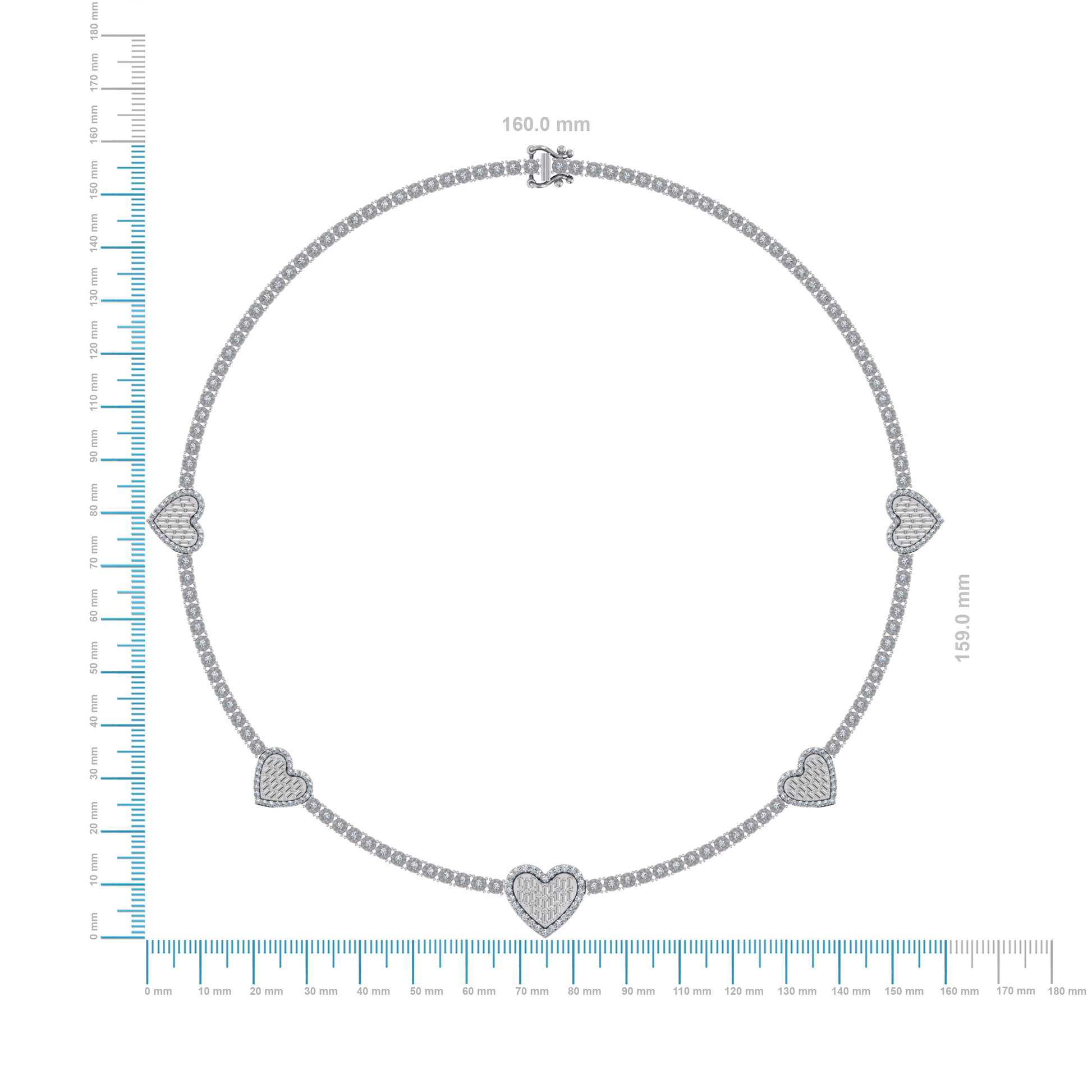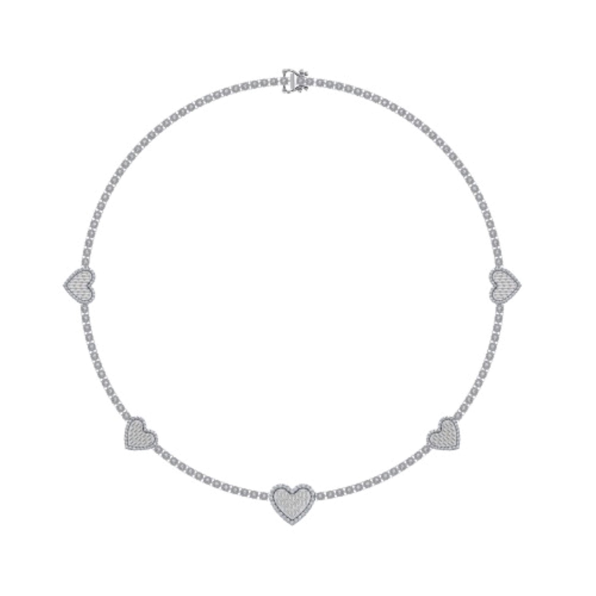 10K White Gold Round Baguette Diamond Heart Shape 18 Inch Necklace 4 Cttw