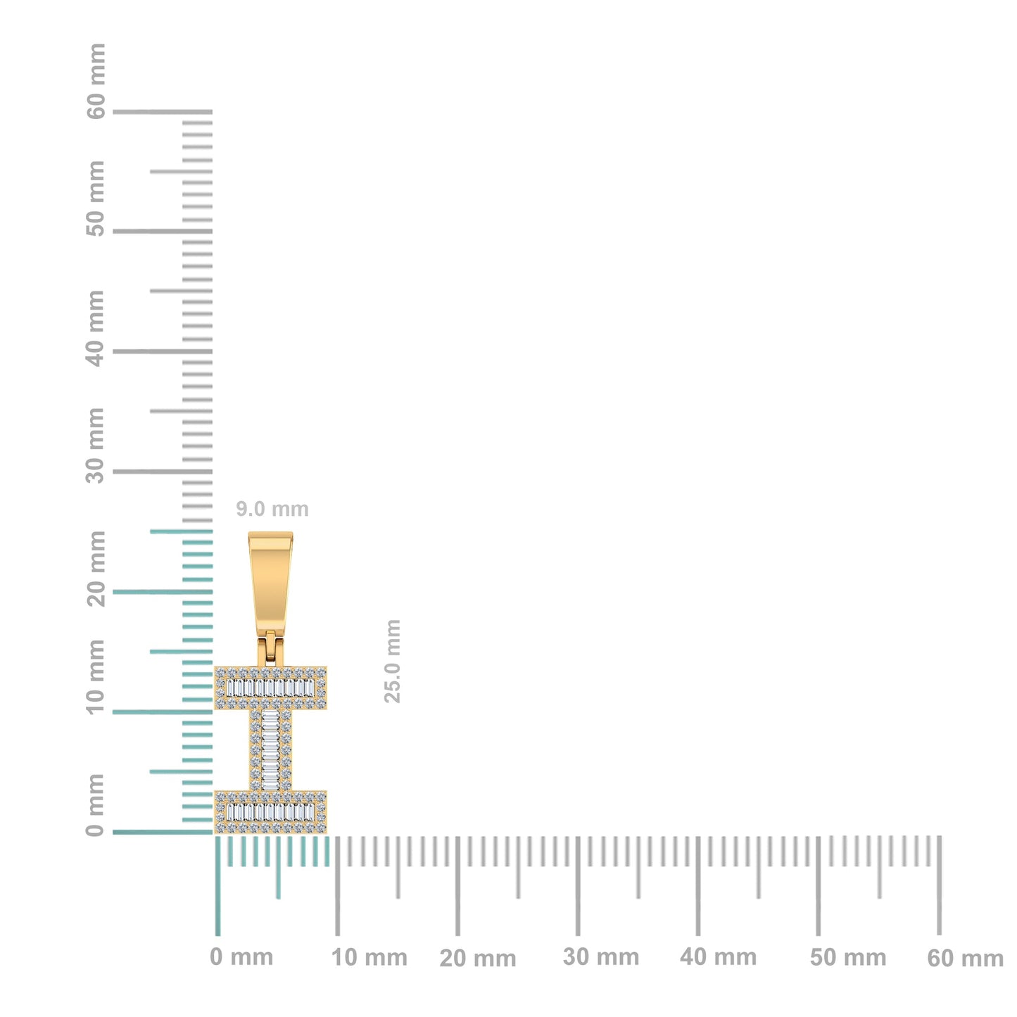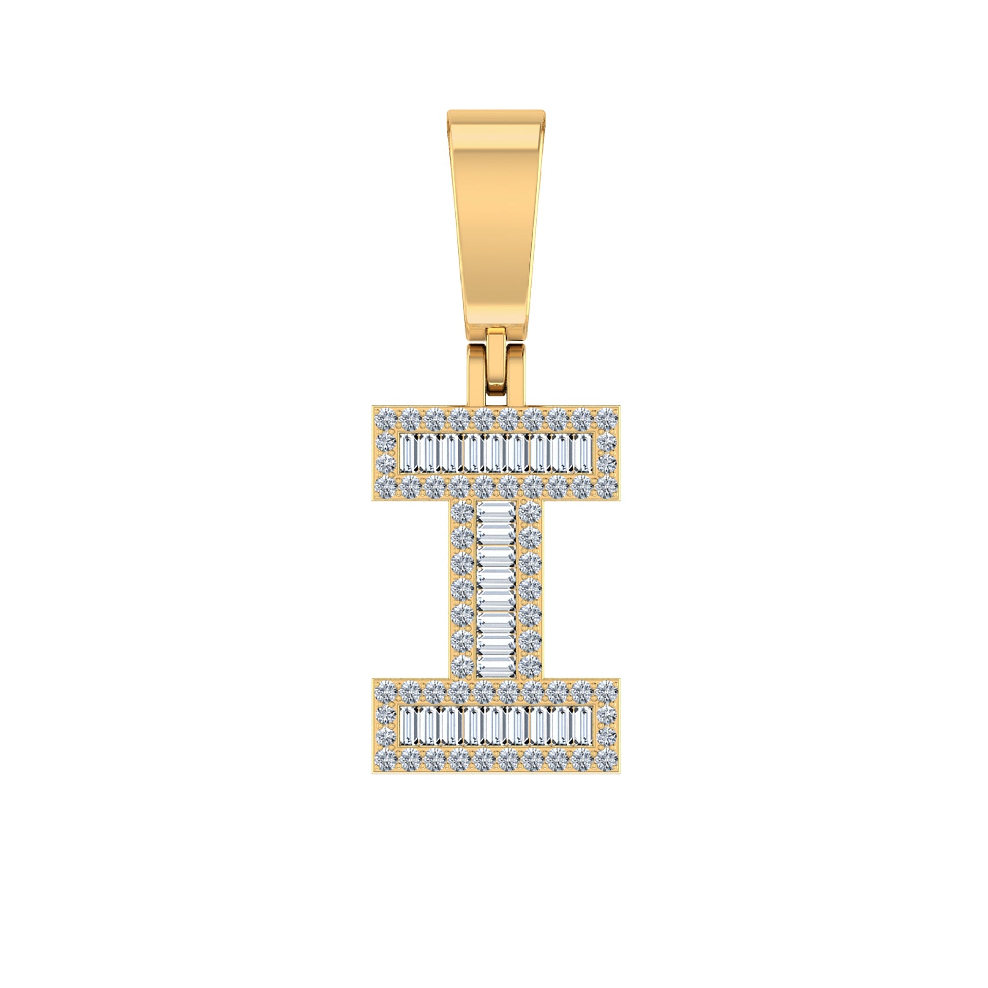 10K Yellow Gold Baguette Diamond Initial I Letter Pendant 1/3 Cttw