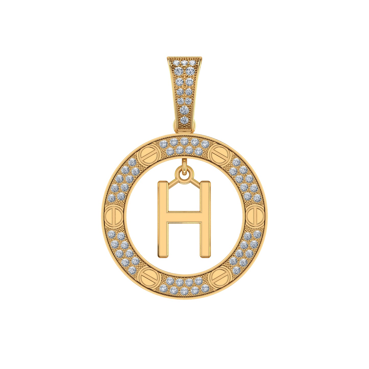 10K Yellow Gold Round Diamond H Letter Initial Pendant 1/5 Cttw
