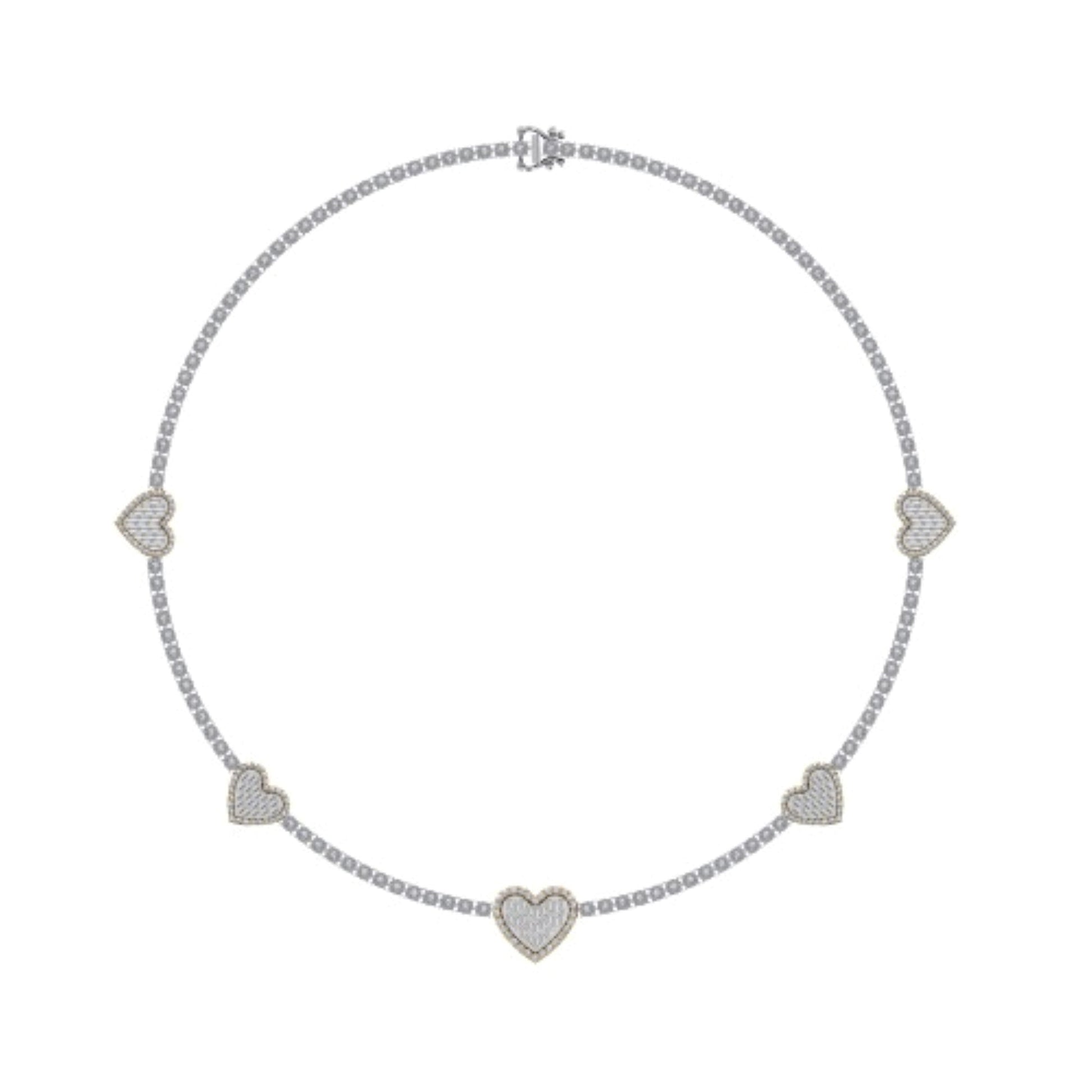 10K Yellow White Two Tone Round Baguette Diamond Heart Designer 18 Inch Necklace 2-3/8 Cttw