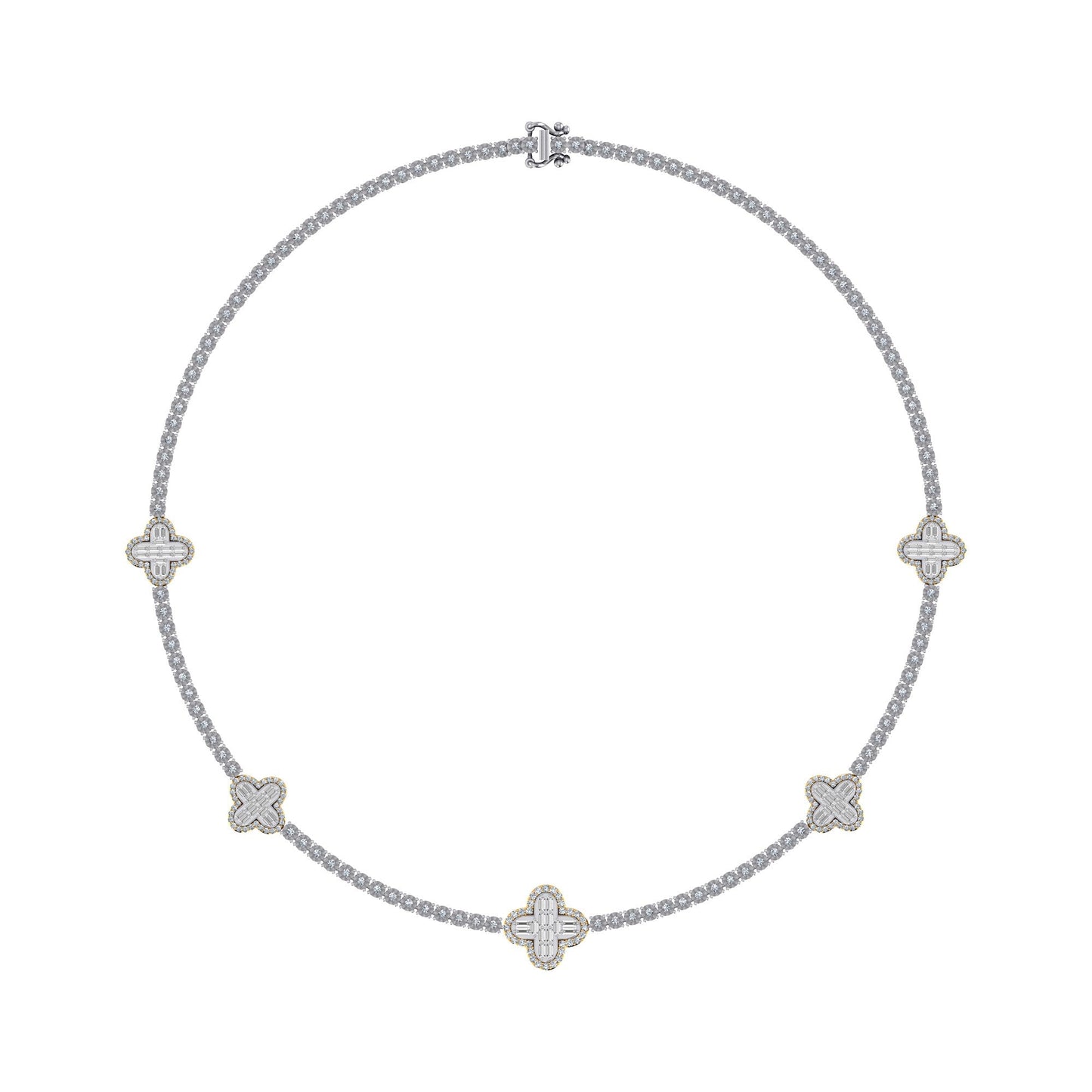 10K Yellow White Two Tone Round Baguette Diamond Designer 18 Inch Necklace 2-1/5 Cttw