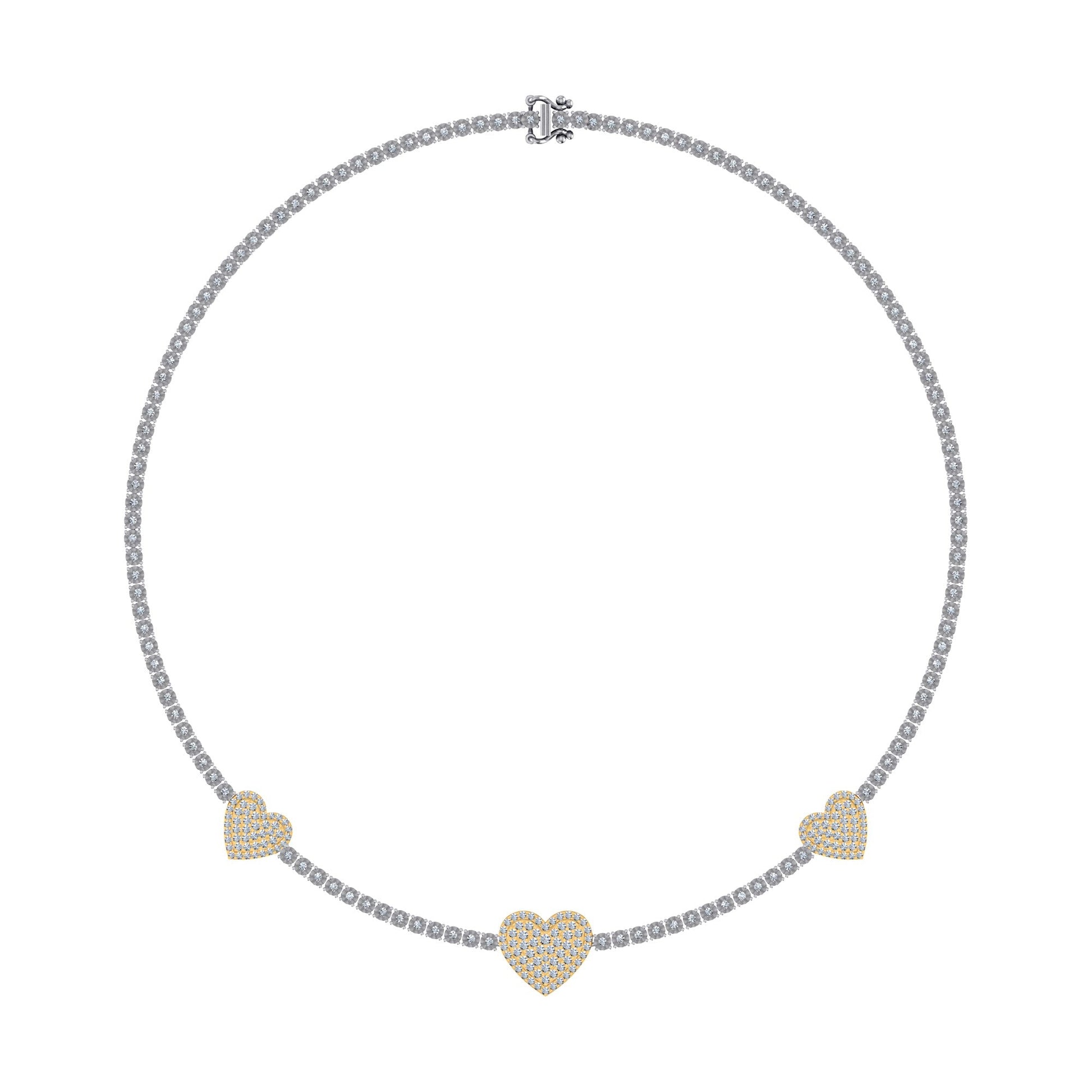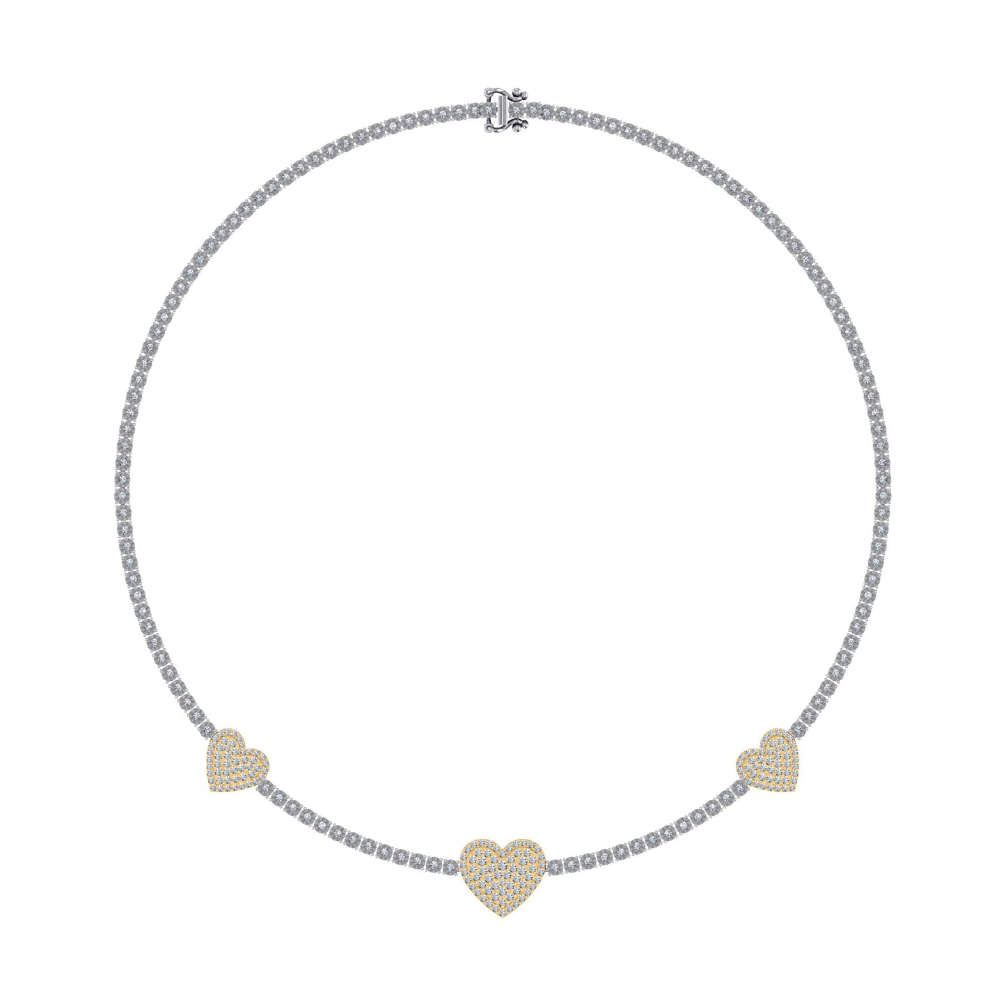 10K Yellow White two tone Gold Round Diamond Heart Designer 18 Inch Necklace 2-7/8 Cttw