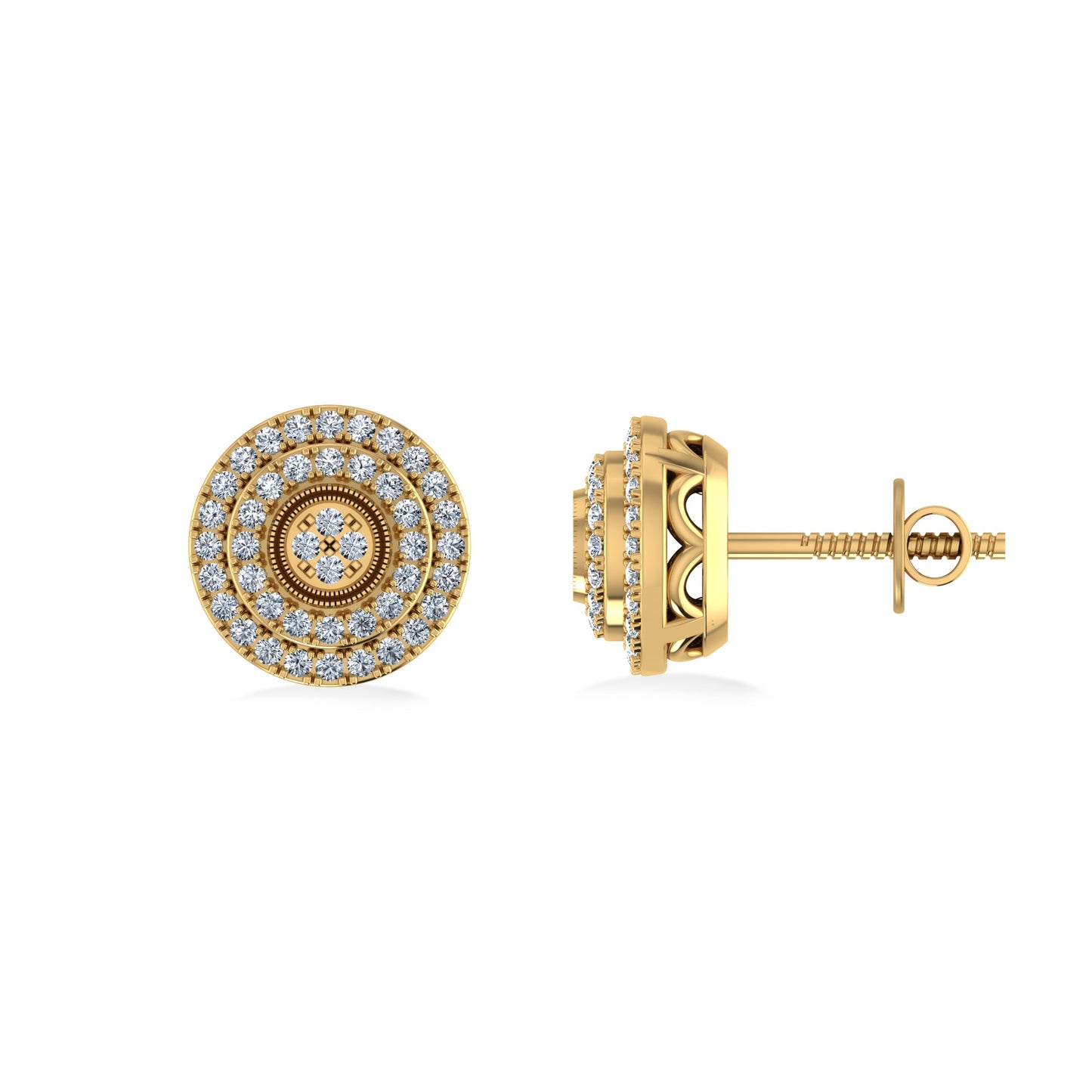 10K Yellow Gold Round Diamond Designer Mens Stud Earring 1/5 Cttw