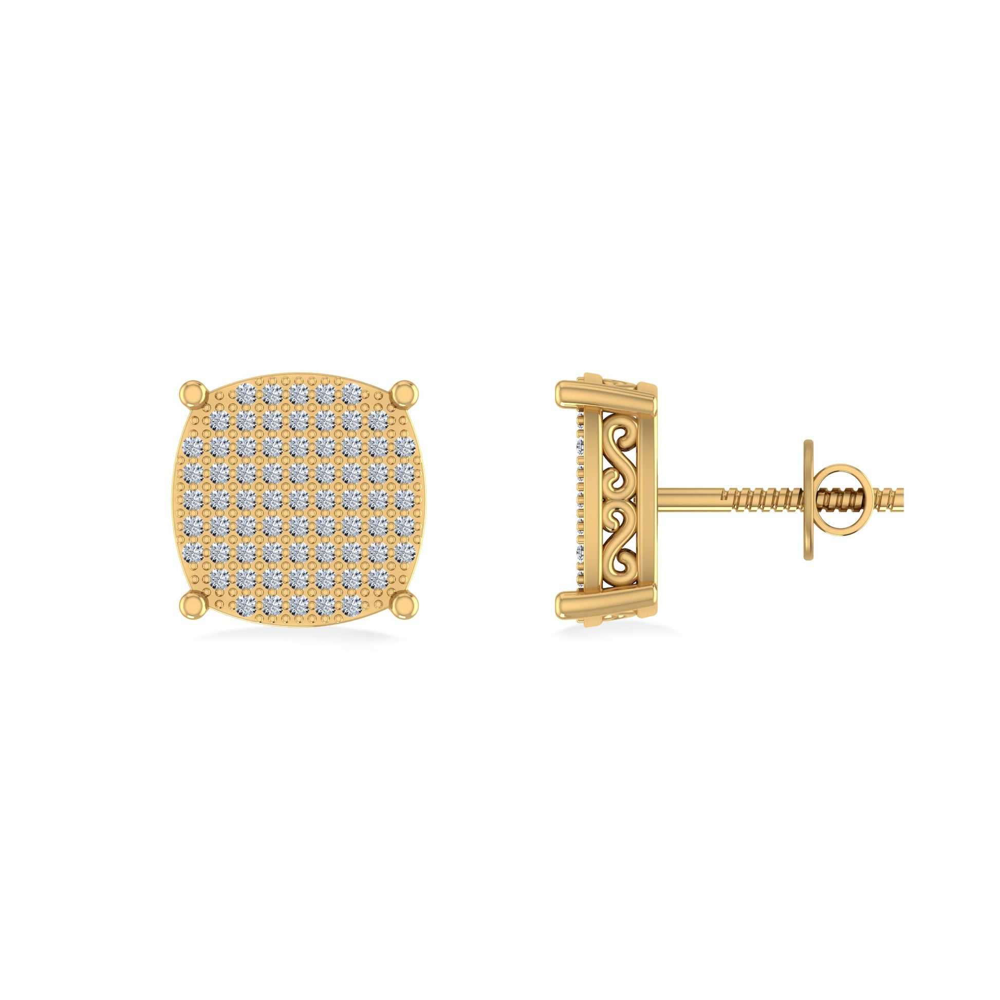 10K Yellow Gold Round Diamond Designer Mens Stud Earring 3/8 Cttw
