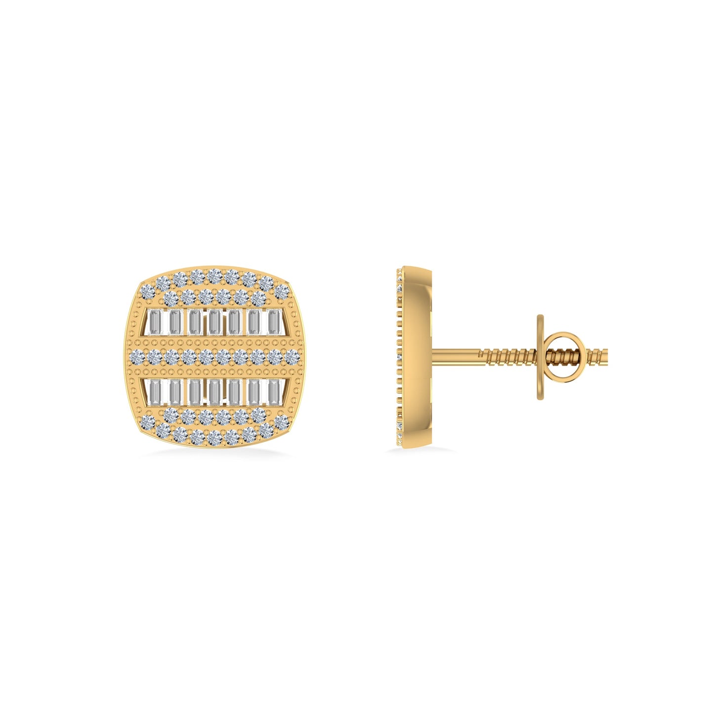 10K Yellow Gold Round Diamond Square Shape Designer Mens Stud Earring 1/3 Cttw