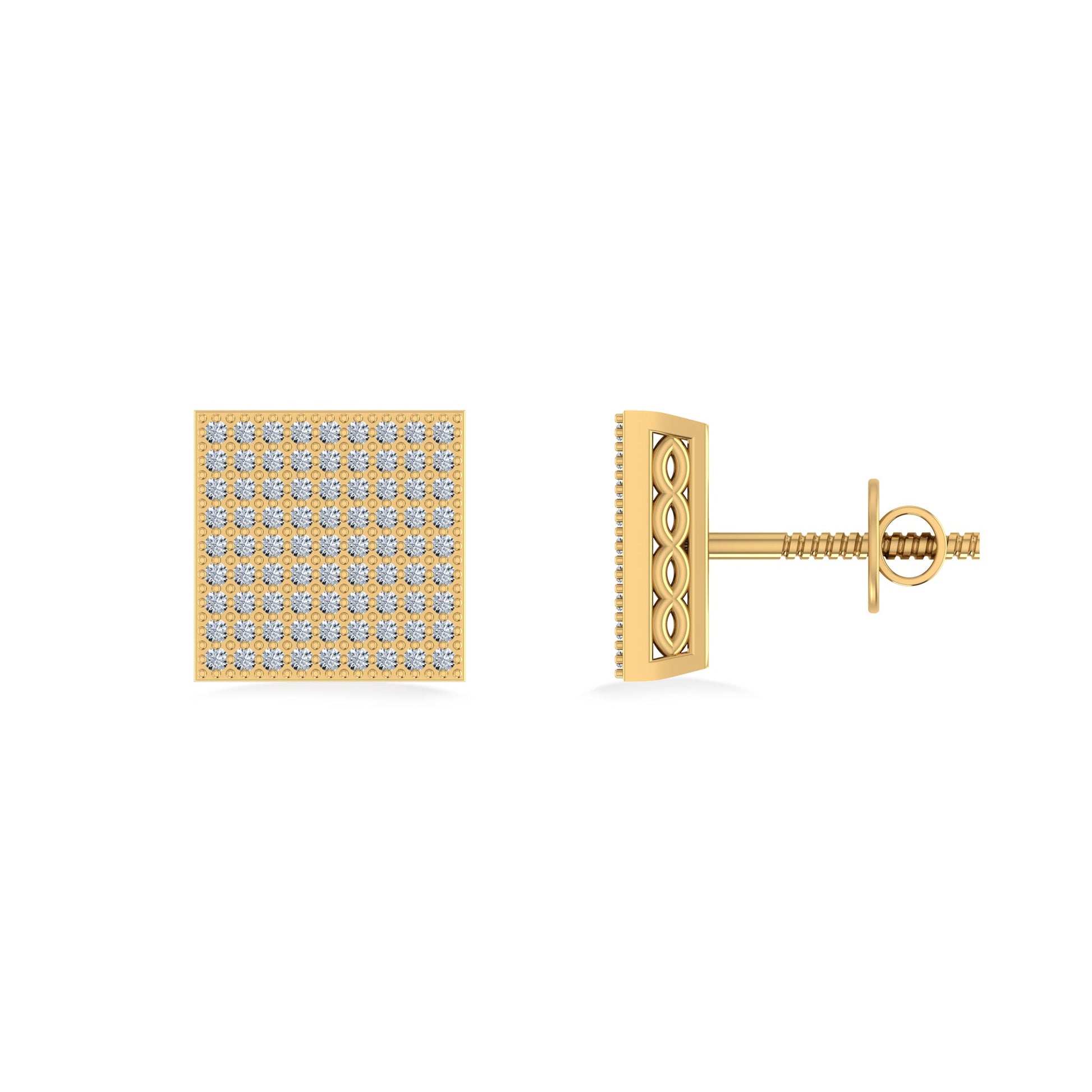 10K Yellow Gold Round Diamond Square Shape Designer Mens Stud Earring 3/8 Cttw