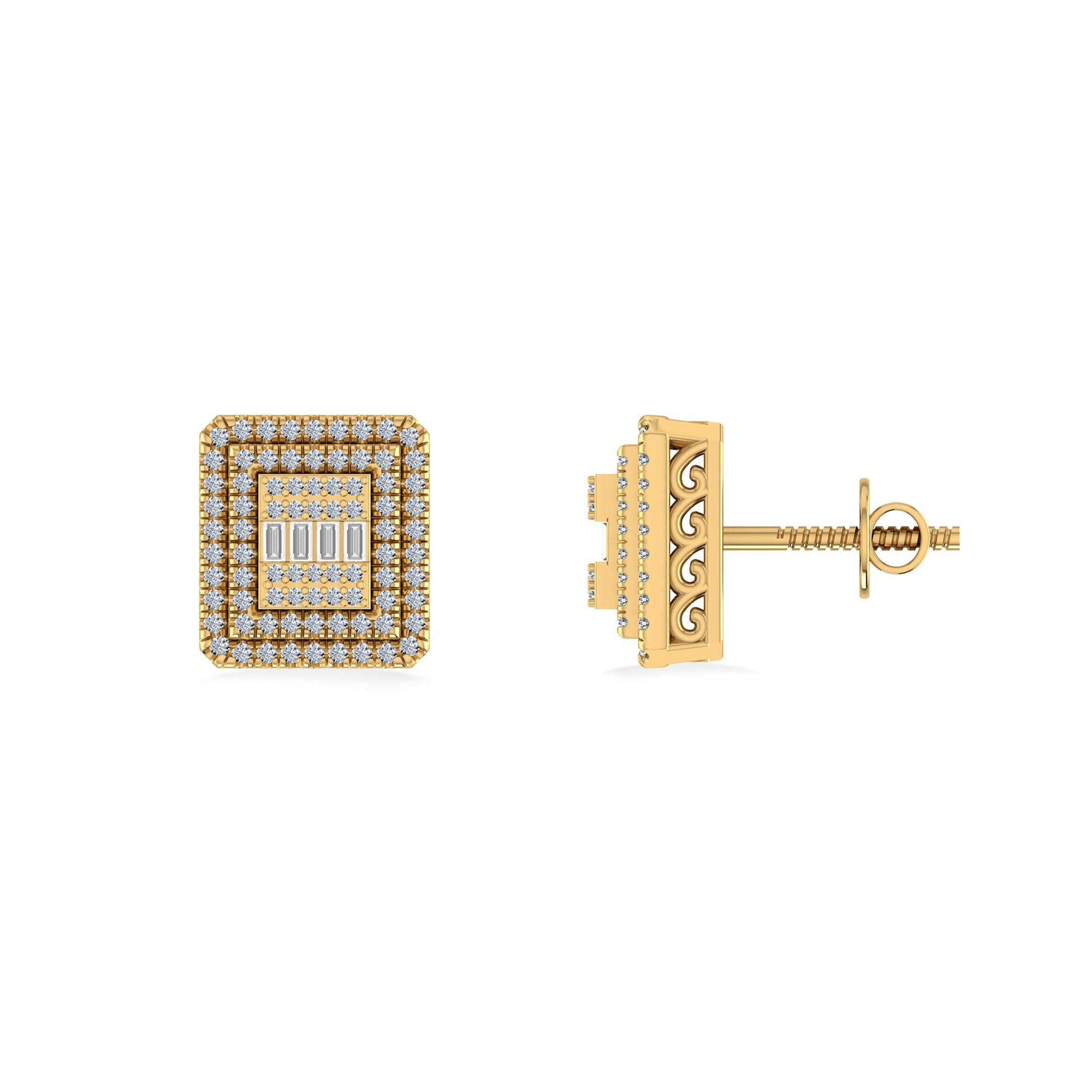 10K Yellow Gold Round Baguette Diamond Square Shape Designer Mens Stud Earring 3/8 Cttw