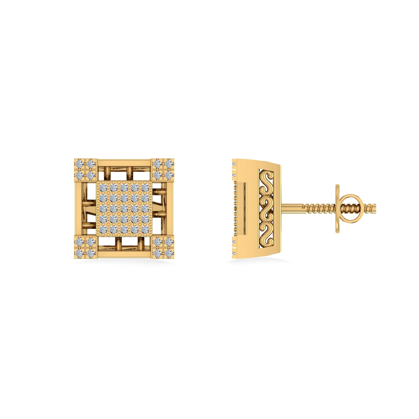 10K Yellow Gold Round Baguette Diamond Square Shape Designer Mens Stud Earring 3/8 Cttw