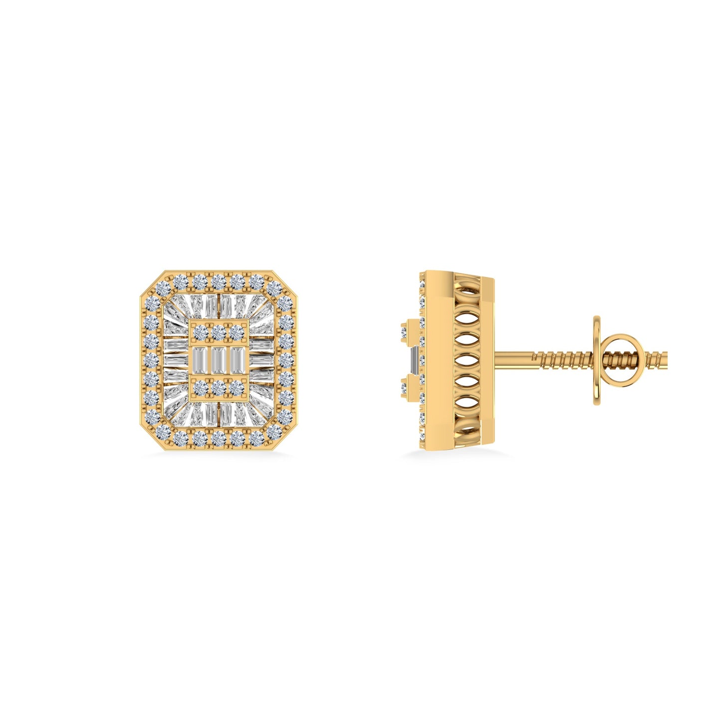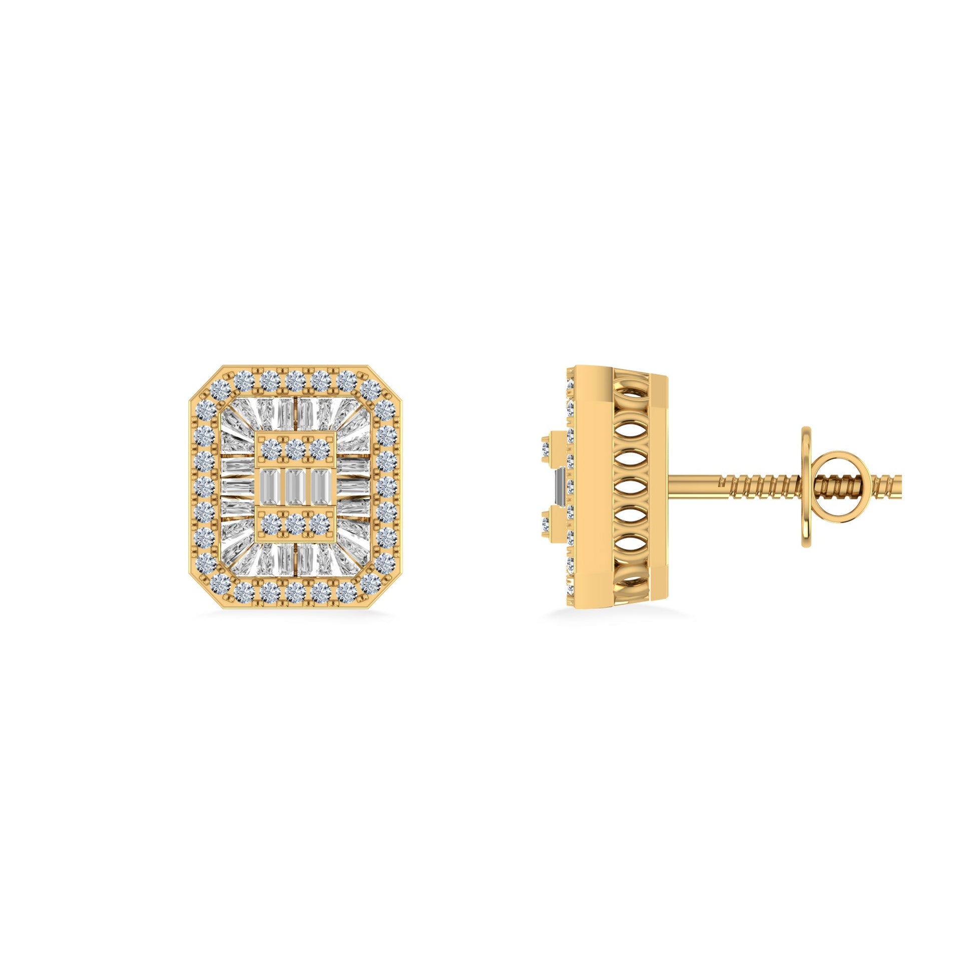 10K Yellow Gold Round Baguette Diamond Square Shape Designer Mens Stud Earring 1/3 Cttw