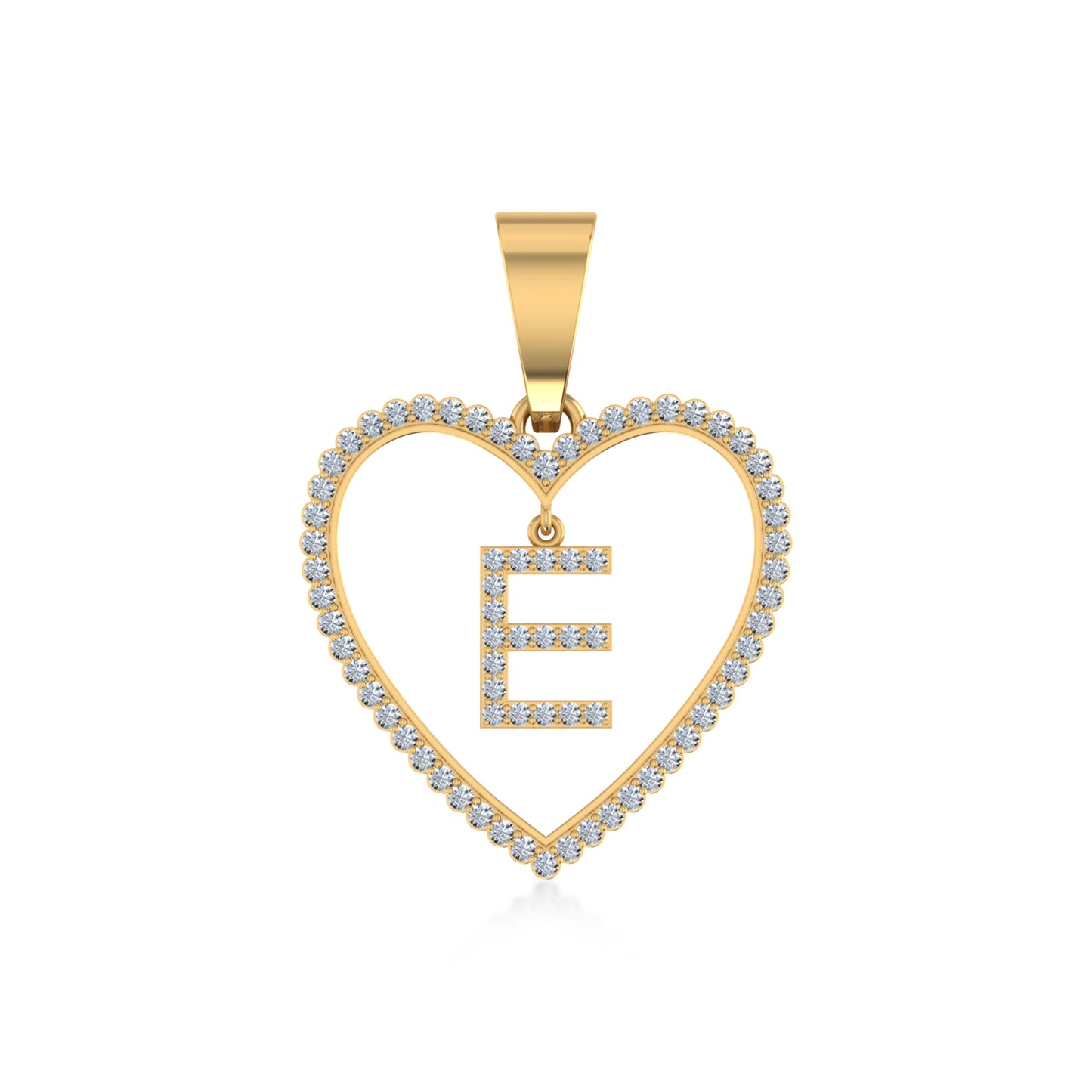 10K Yellow Gold Diamond Initial Heart E Letter Pendant 1/5 Cttw