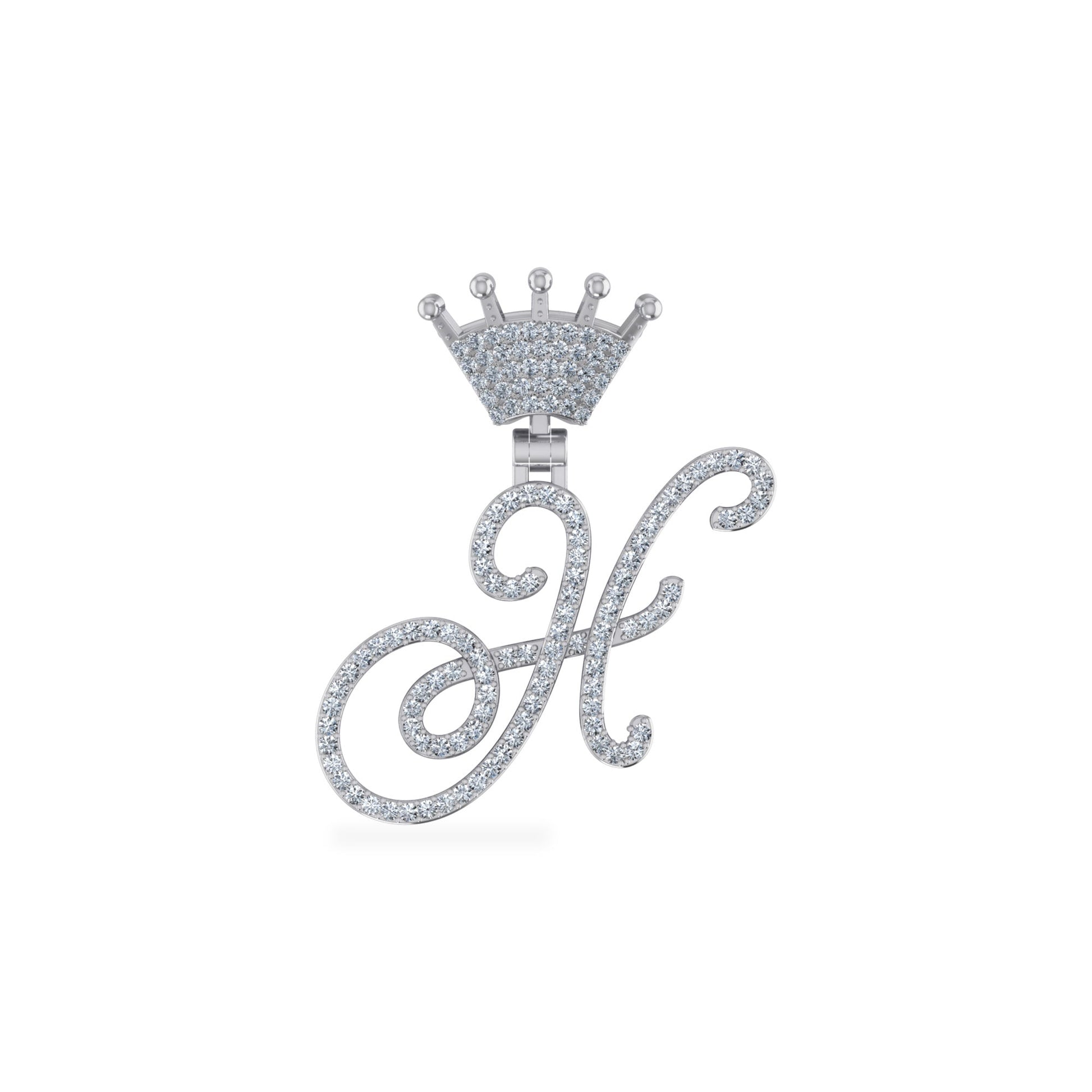 10K White Gold Round Diamond Crown H Letter Initial Pendant 1/4 Cttw