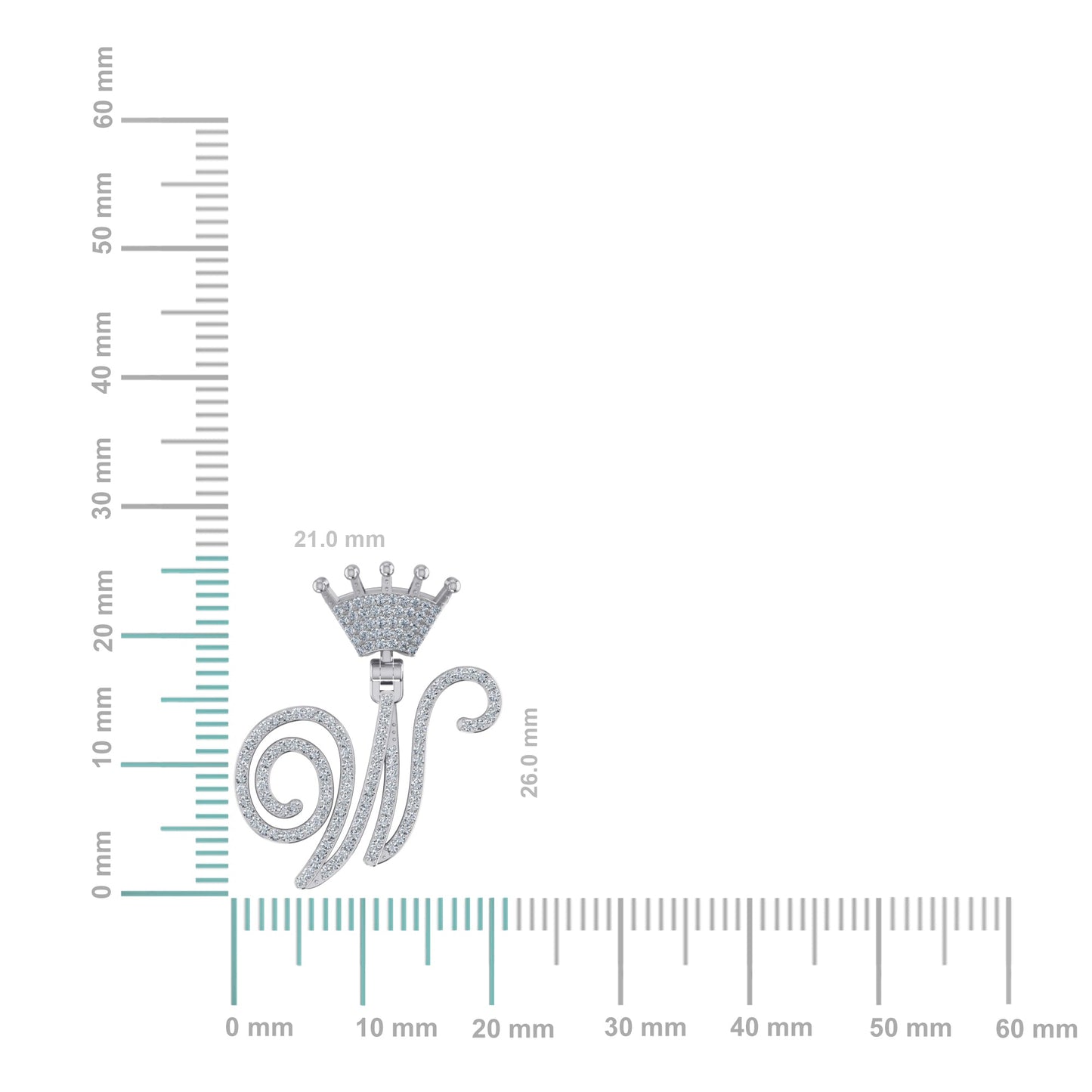 10K White Gold Round Diamond Crown W Letter Initial Pendant 1/4 Cttw