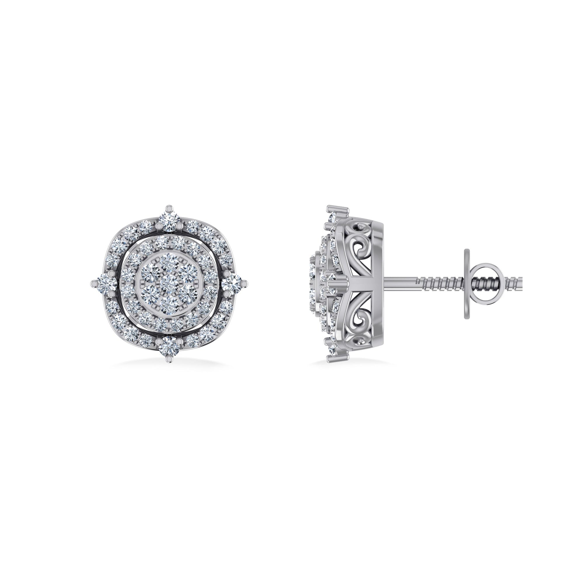 10K White Gold Round Diamond Designer Mens Stud Earring 1/4 Cttw