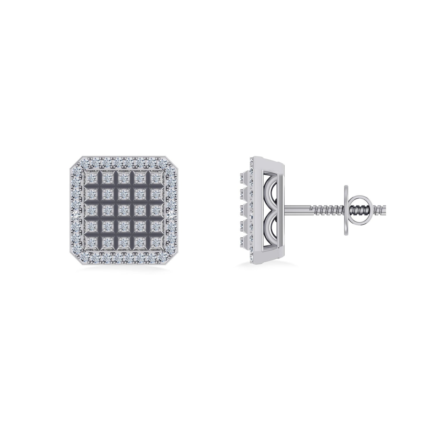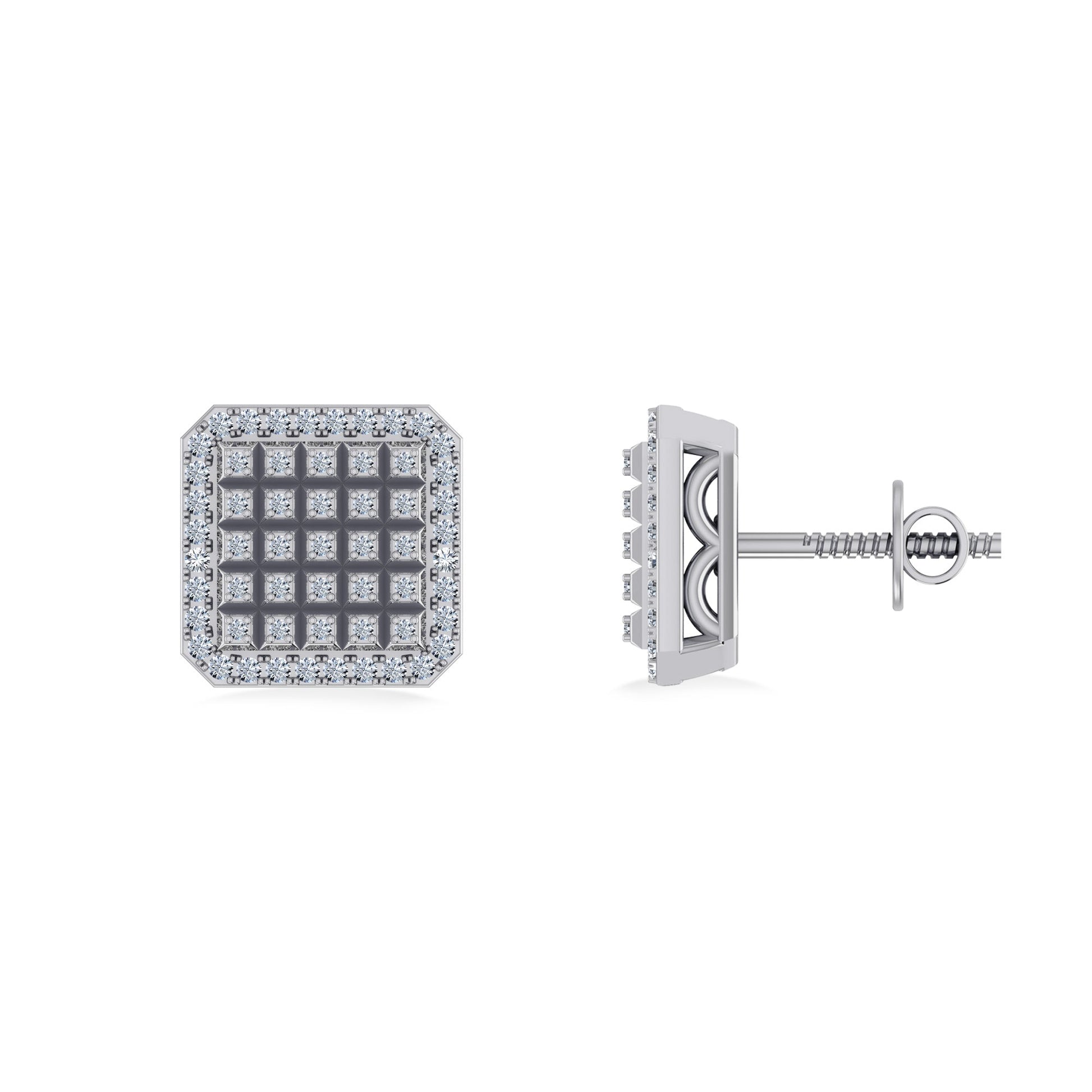 10K White Gold Round Diamond Square Shape Designer Mens Stud Earring 1/5 Cttw