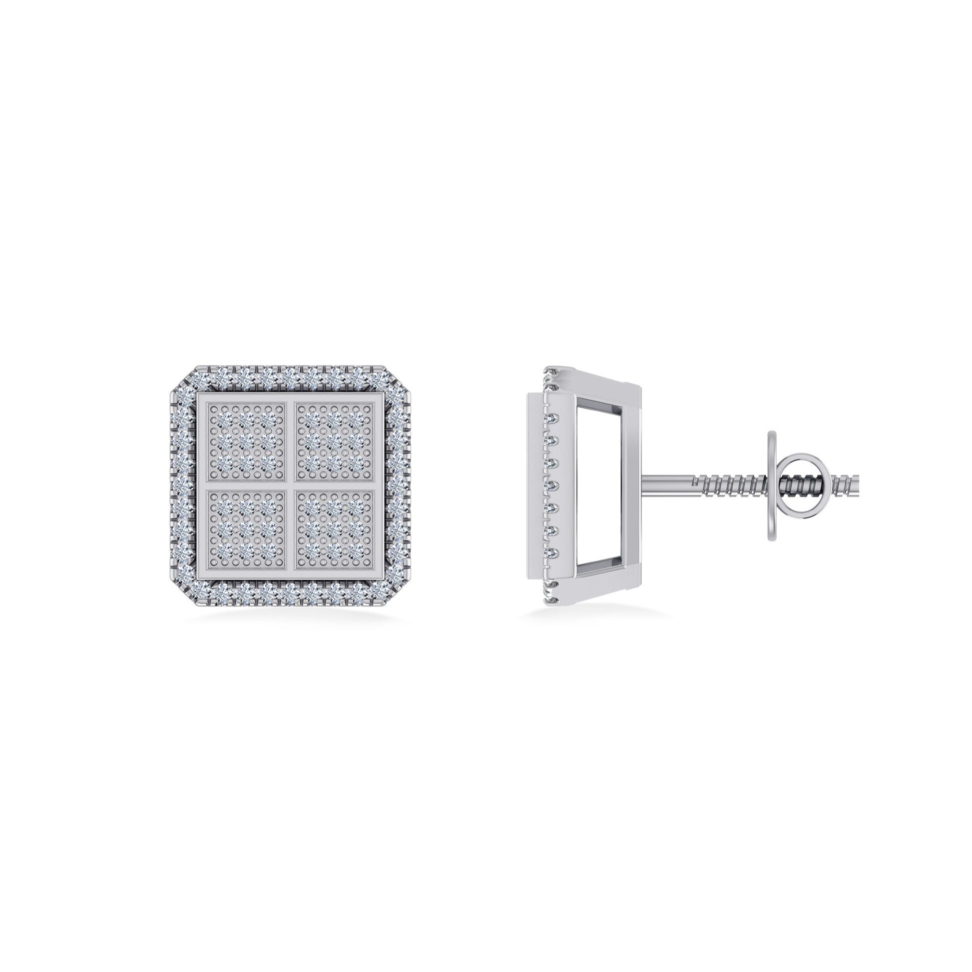 10K White Gold Round Baguette Diamond Square Shape Designer Mens Stud Earring 1/5 Cttw