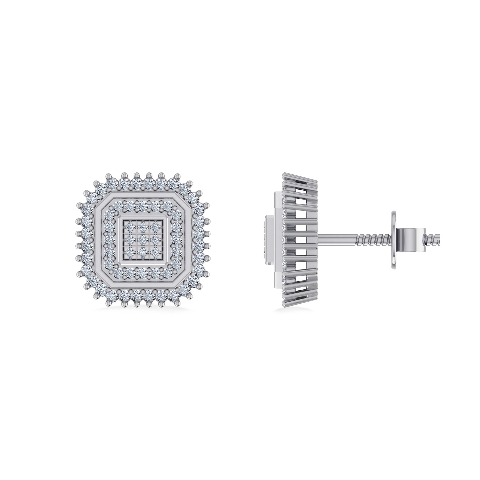 10K White Gold Round Diamond Square Shape Designer Mens Stud Earring 1/5 Cttw