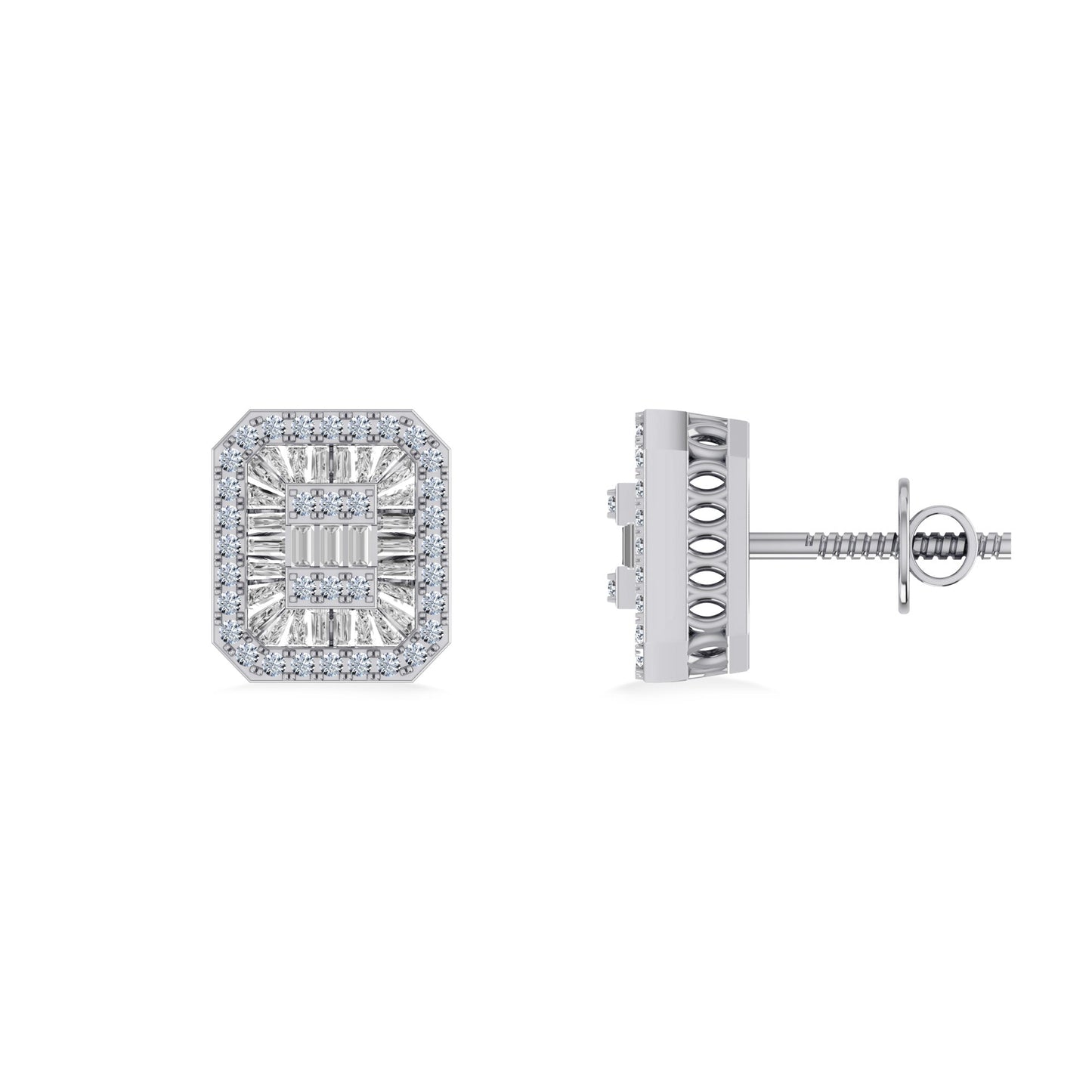 10K White Gold Round Baguette Diamond Square Shape Designer Mens Stud Earring 1/3 Cttw