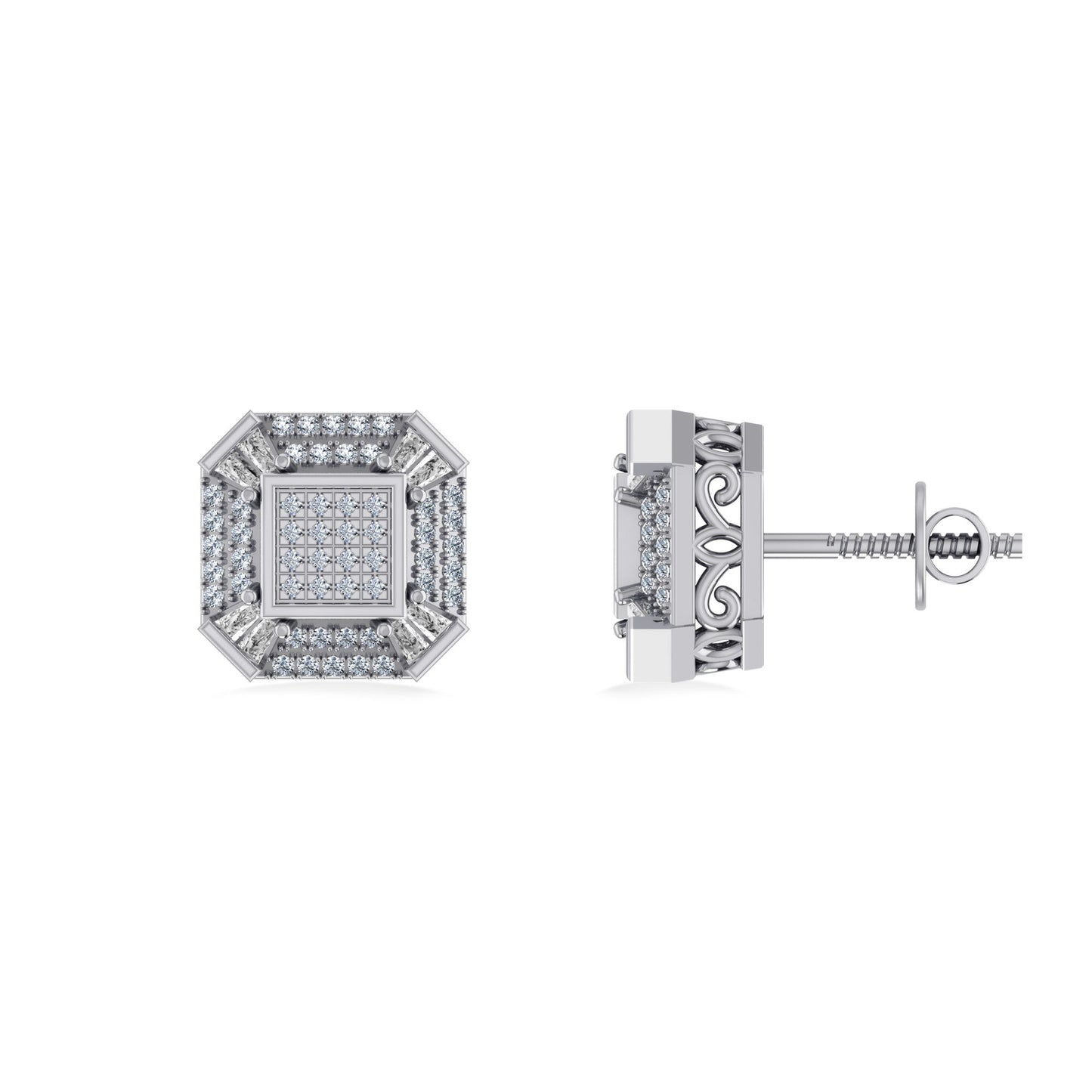 10K White Gold Round Baguette Diamond Designer Mens Stud Earring 1/4 Cttw