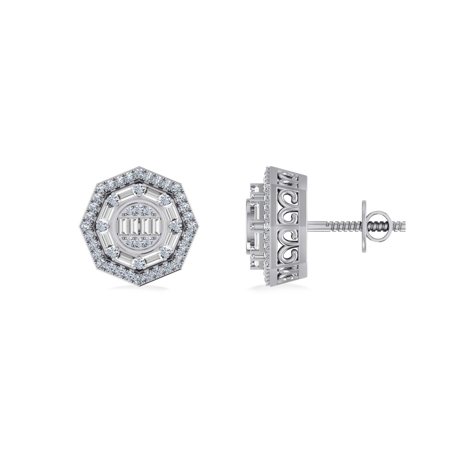 10K White Gold Round Diamond Designer Mens Stud Earring 1/3 Cttw