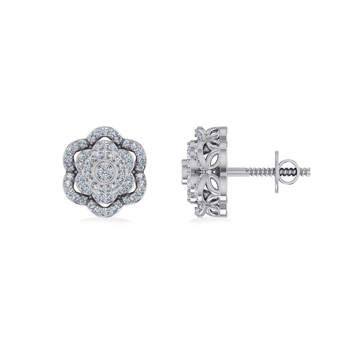 10K White Gold Round Diamond Floral Designer Mens Stud Earring 1/5 Cttw