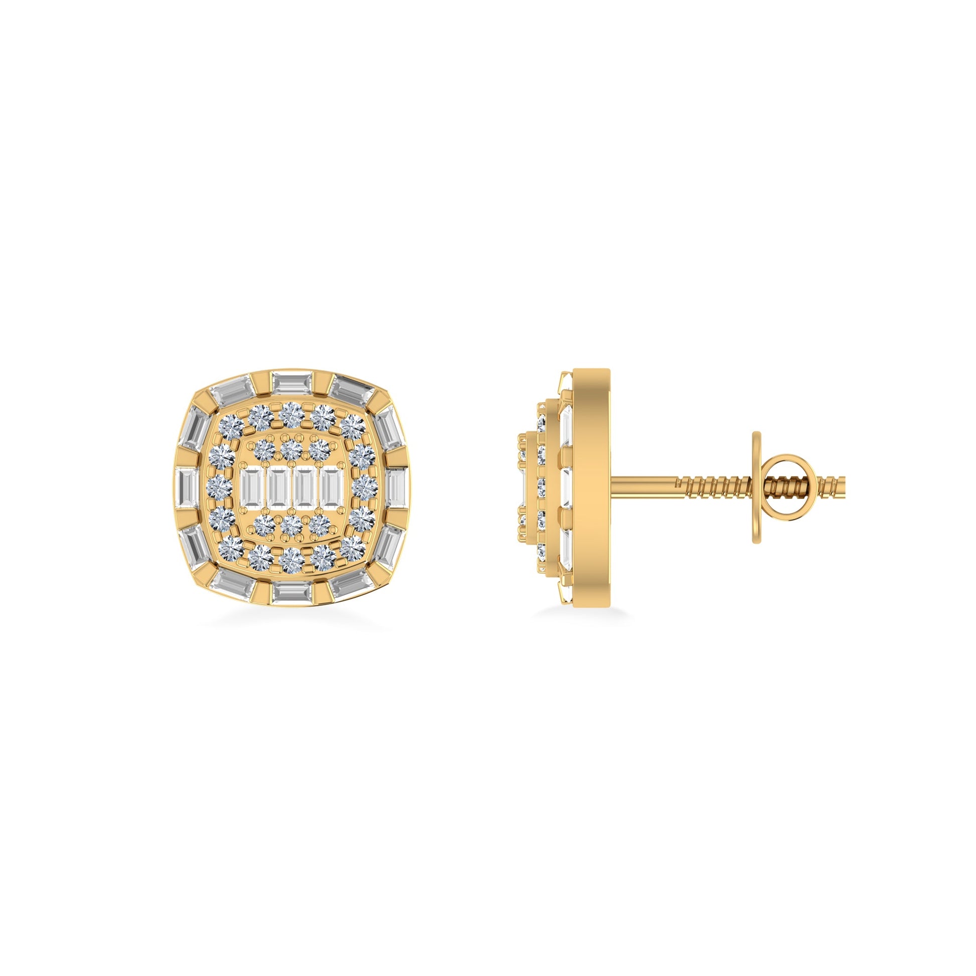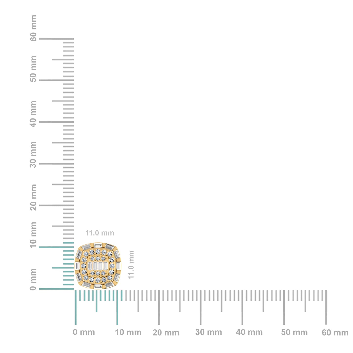 10K Yellow Gold Round Baguette Diamond Square Designer Earring 3/4 Cttw