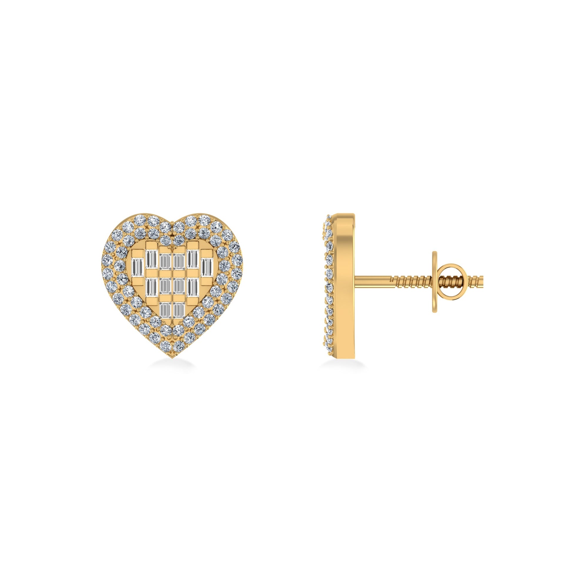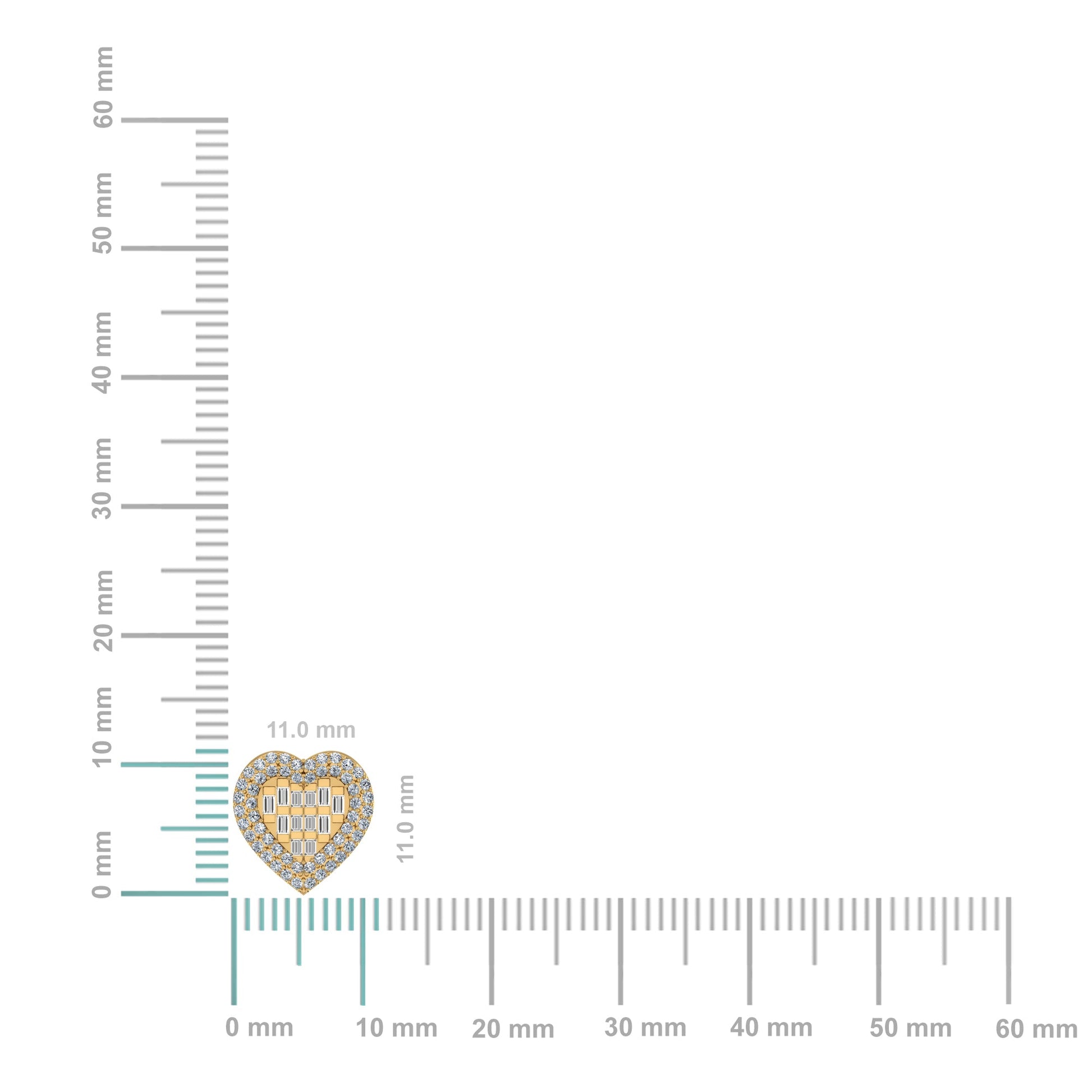 10K Yellow Gold Round Baguette Diamond Halo Heart Designer Earring 1/2 Cttw