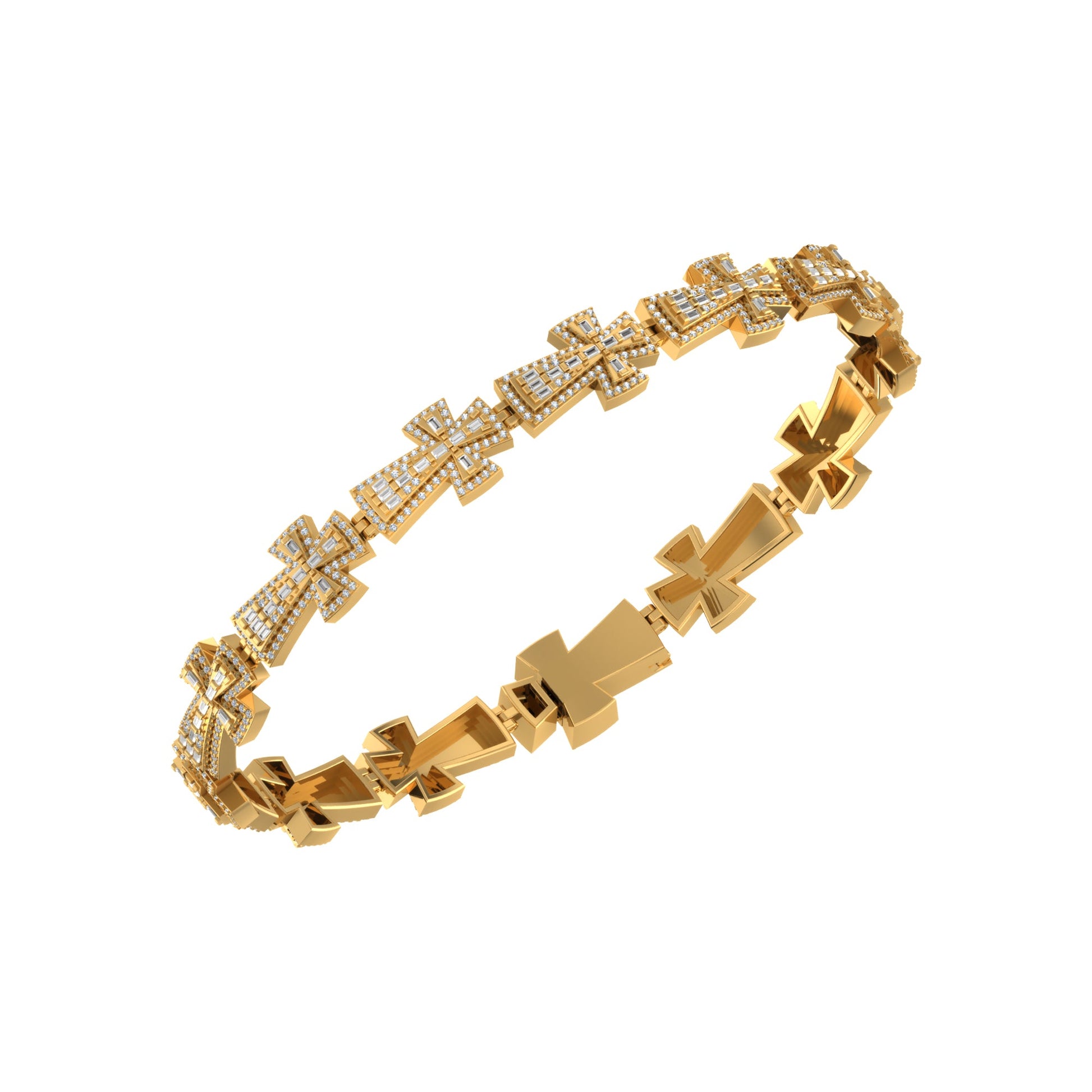 10K Yellow Gold Round Baguette Diamond Cross Religious 8 Inch Bracelet 2-1/2 Cttw