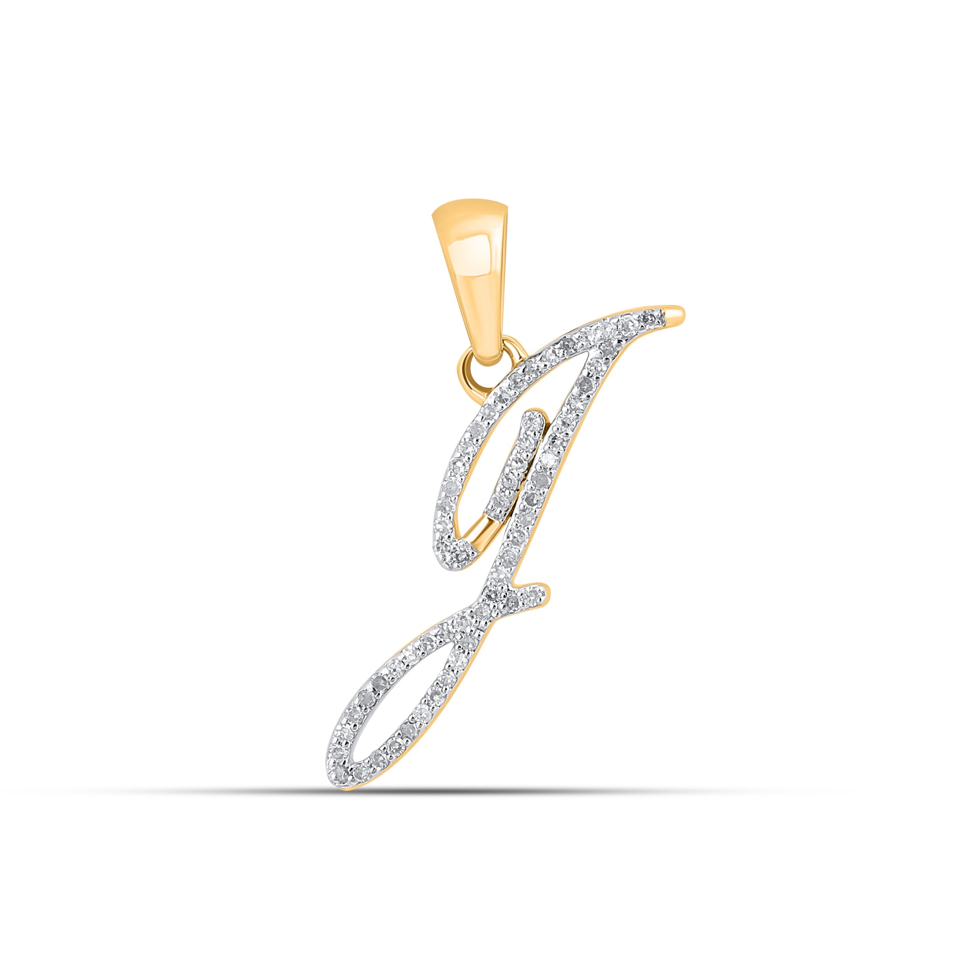 10K Yellow Gold Round Diamond J Letter Initial Pendant 1/10 Cttw