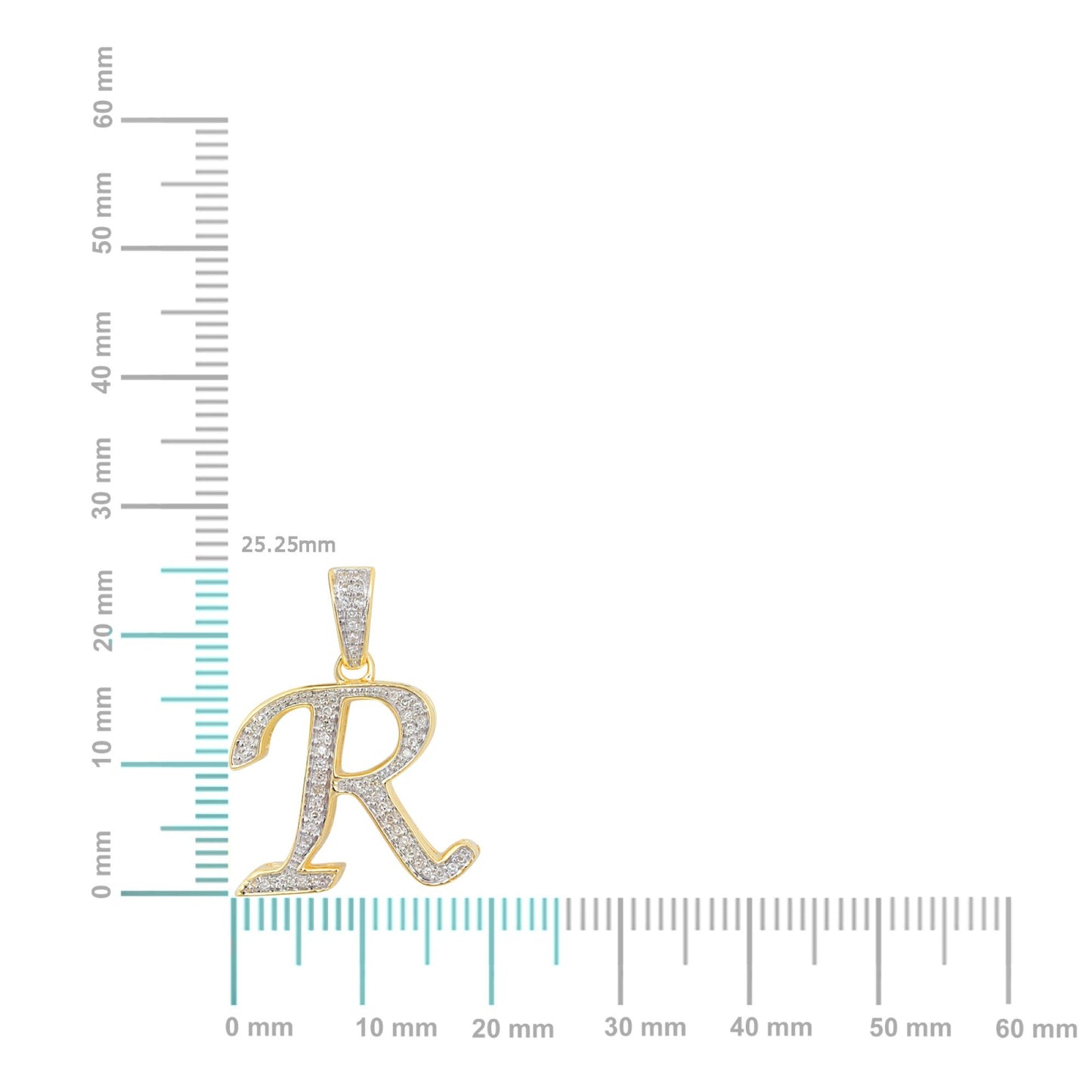 10K Yellow Gold Round Diamond R Letter Initial Pendant 1/10 Cttw