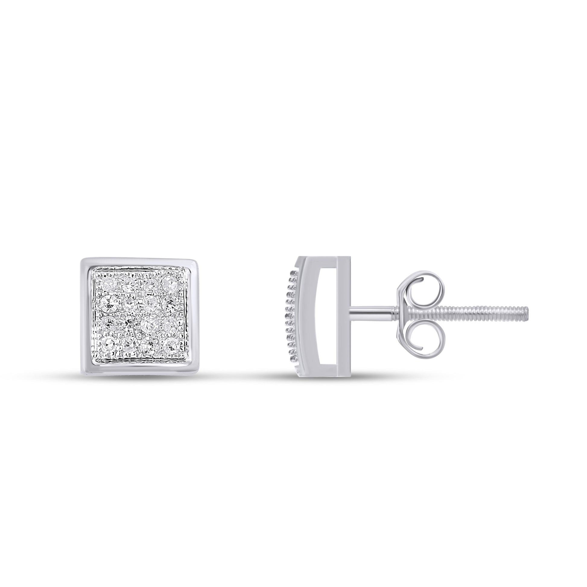 10K White Gold Round Diamond Square Stud Earring 1/10 Cttw