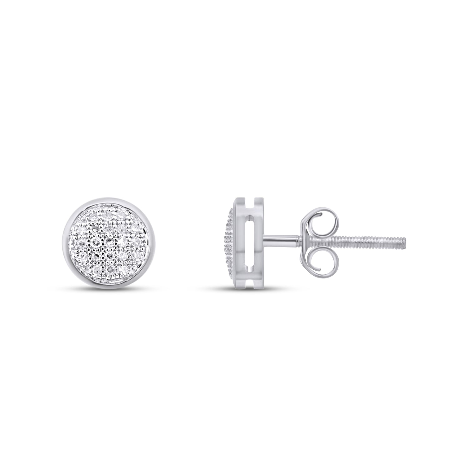 10K White Gold Round Diamond Circle Stud Earring 1/10 Cttw