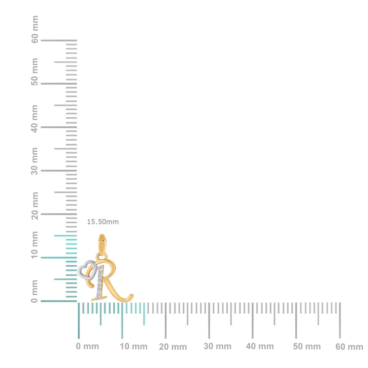 10K Yellow Gold Round Diamond R Letter Initial With Heart Pendant 1/10 Cttw