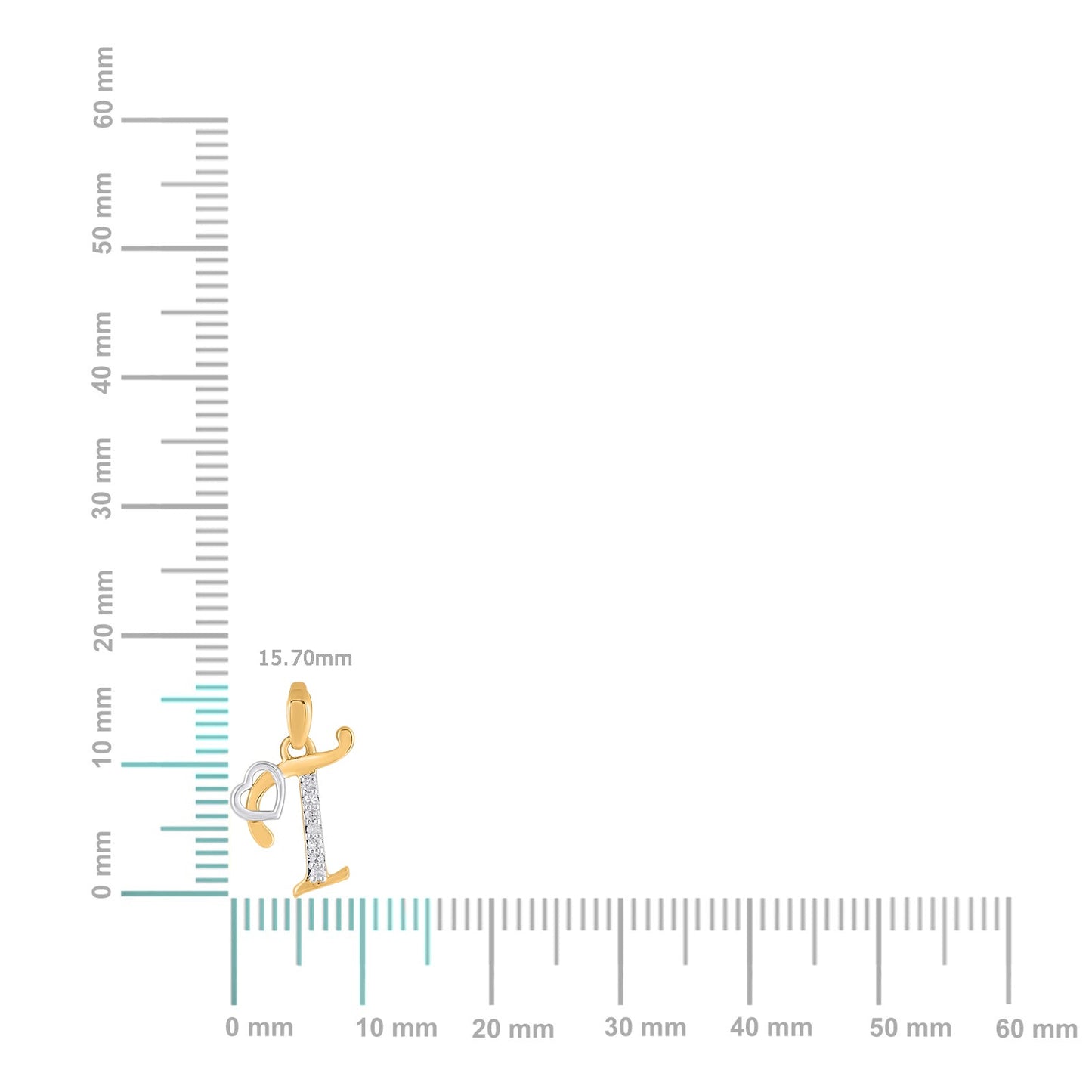 10K Yellow Gold Round Diamond T Letter Initial With Heart Pendant 1/10 Cttw