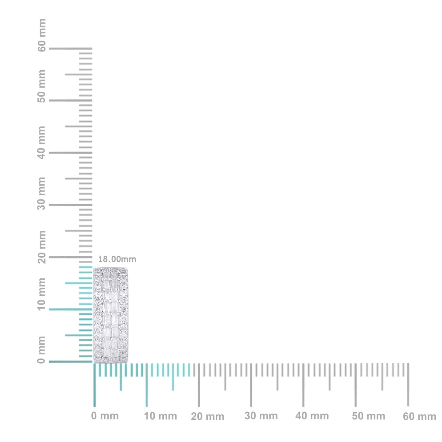 10K White Gold Round Baguette Diamond 3 Row Designer Hoop Earring 1 Cttw