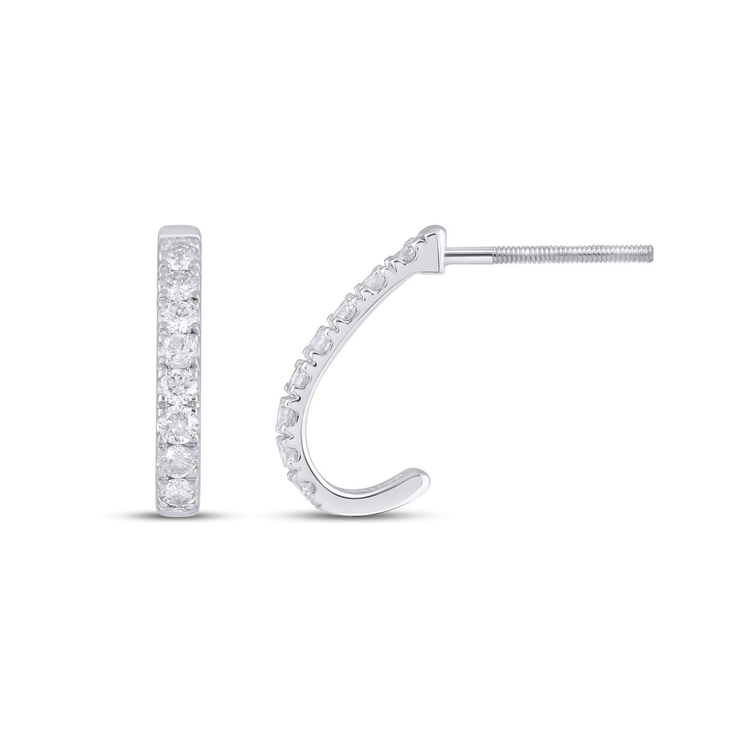 10K White Gold Round Diamond Designer Half Hoop Earring 1/2 Cttw