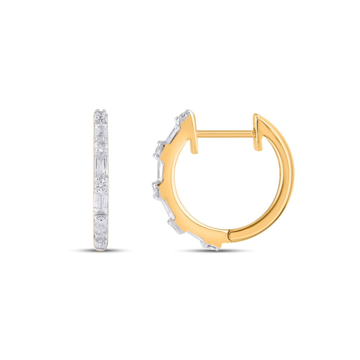 10K Yellow Gold Round Baguette Diamond Designer Hoop Earring 1/3 Cttw
