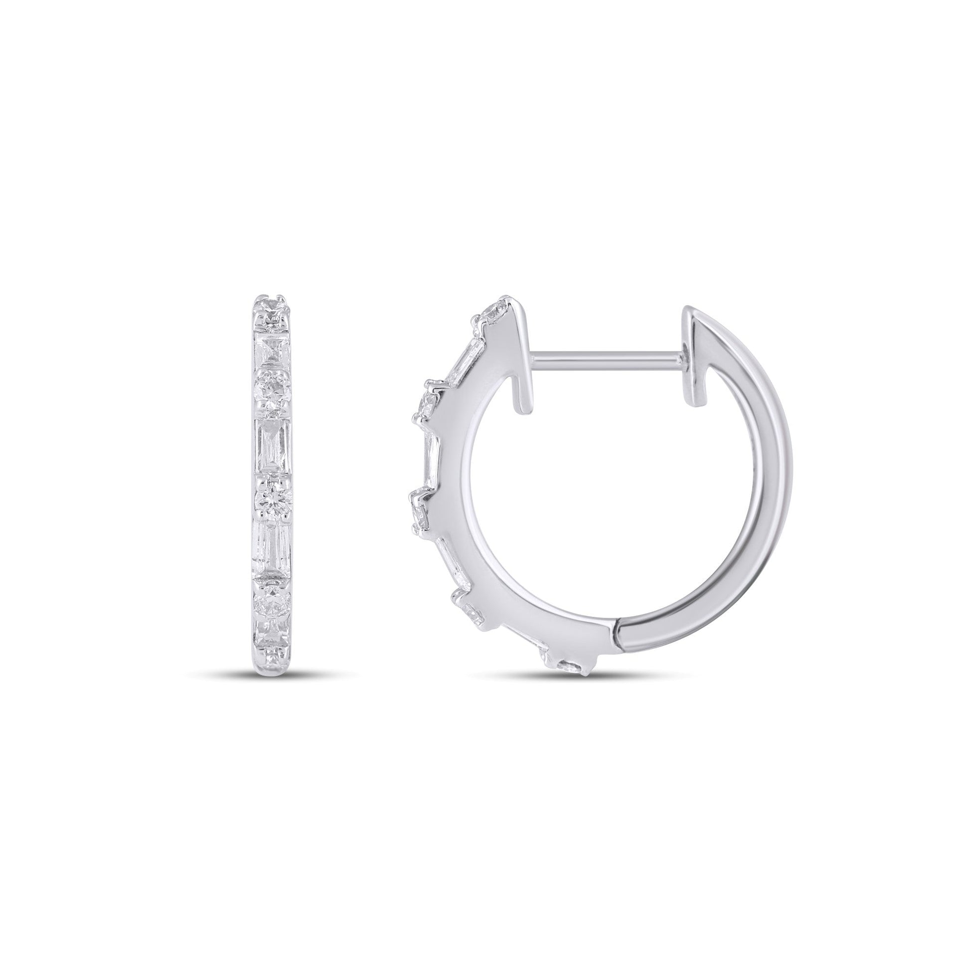 10K White Gold Round Baguette Diamond Designer Hoop Earring 1/4 Cttw