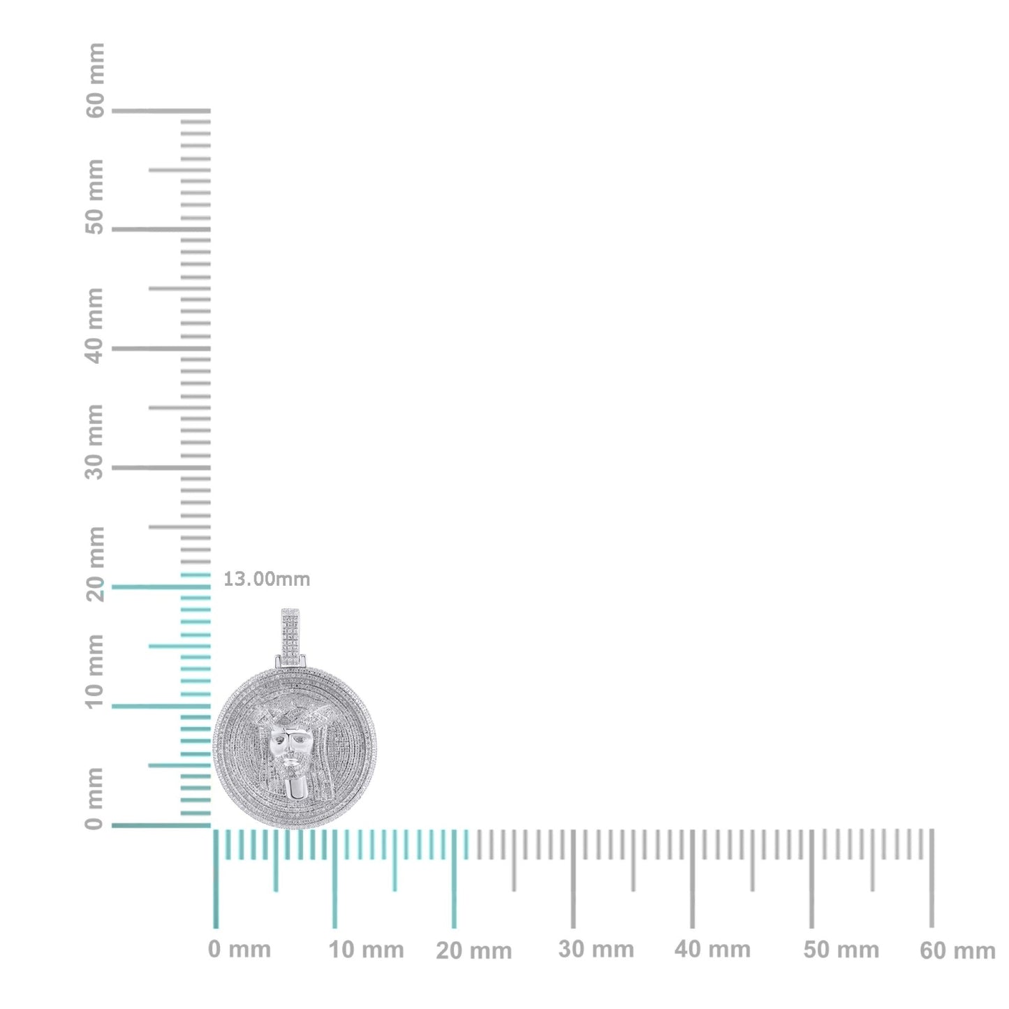 10K White Gold Round Baguette Diamond Jesus Face Religious Pendant 2 Cttw