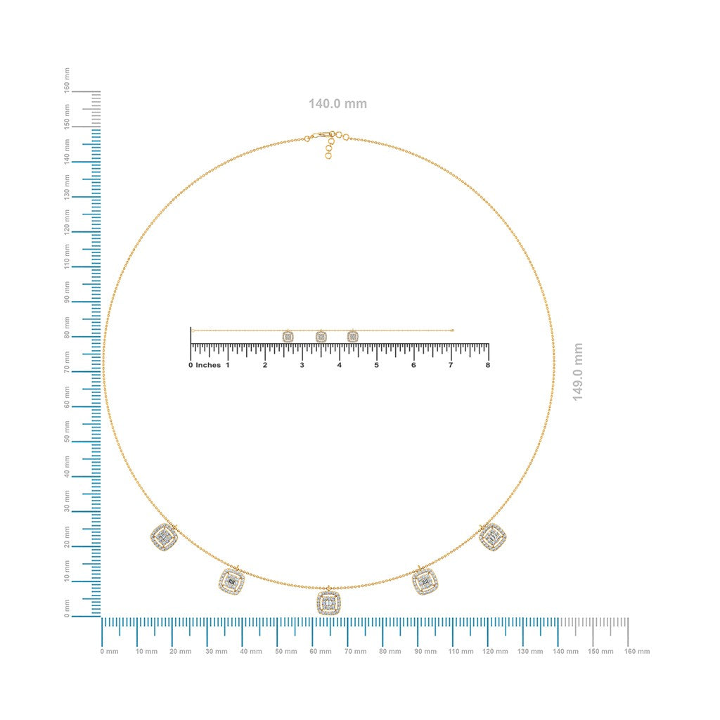 14K Yellow Gold Square Necklace Bracelet Set 1-1/3 Cttw