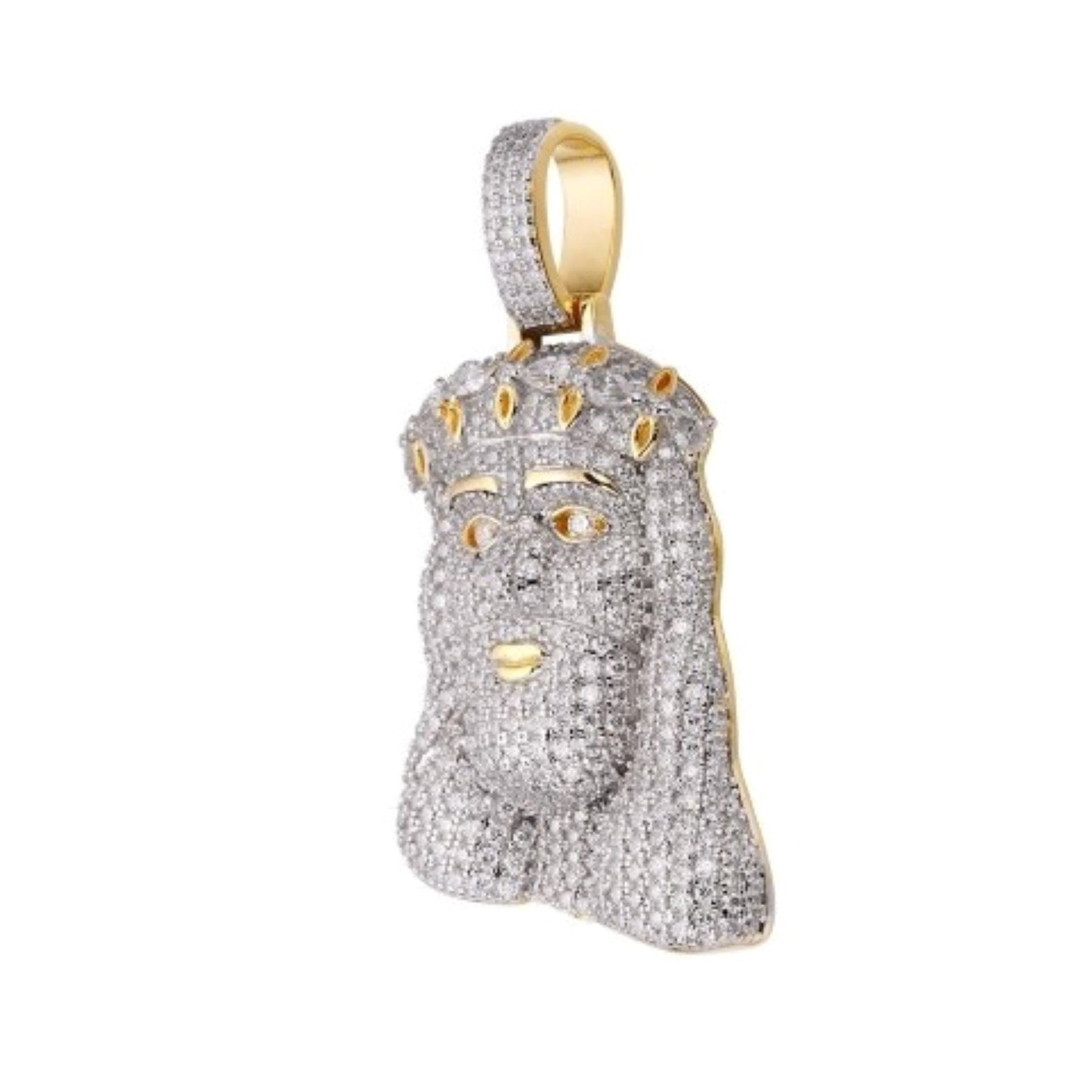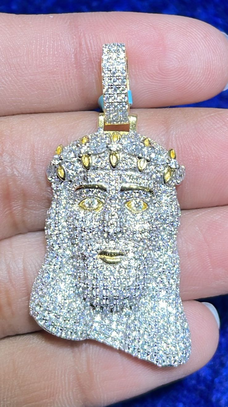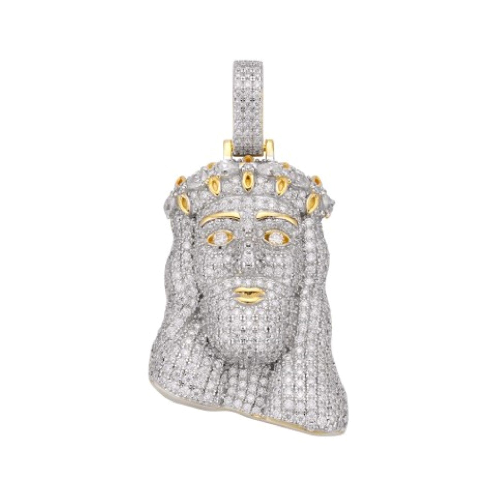 S.Silver Moissanite Jesus Face Religious Pendant RP+GP 3-1/3 Cttw