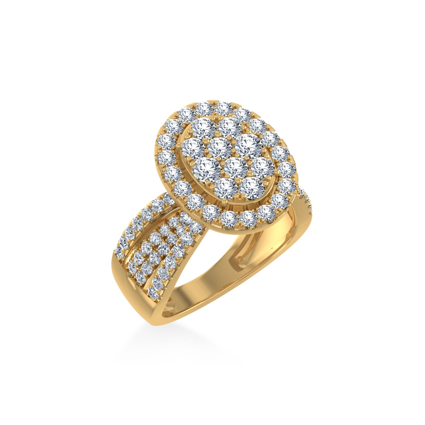 14K Yellow Gold Round Moissanite Halo Floral Cluster Womens SZ 7 Bridal Ring 1-7/8 Cttw