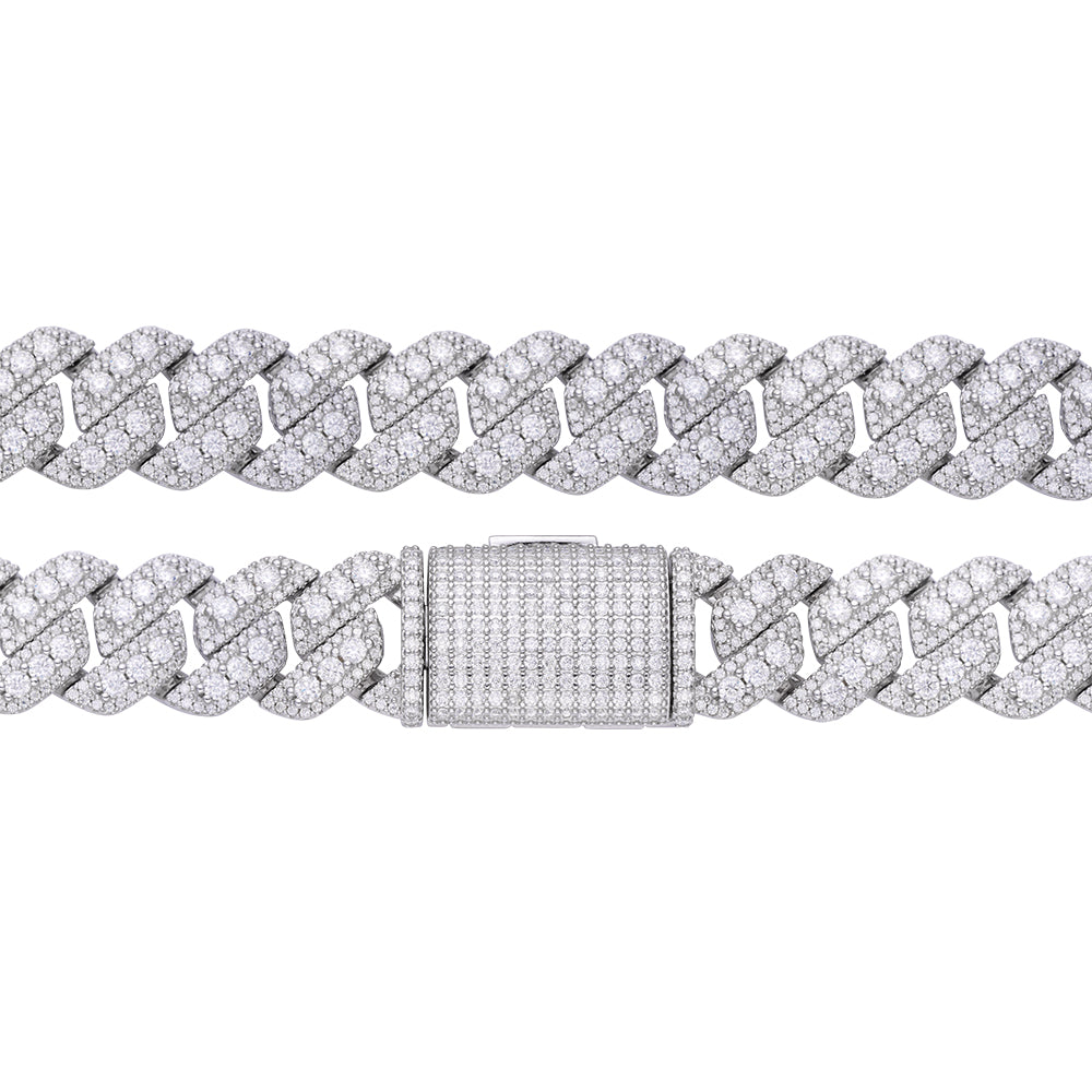 S.Silver Round Big Stone in Center Surrounded with Small Stones 14mm Moissanite Cuban Chain 22Inch Necklace RP 34 Cttw