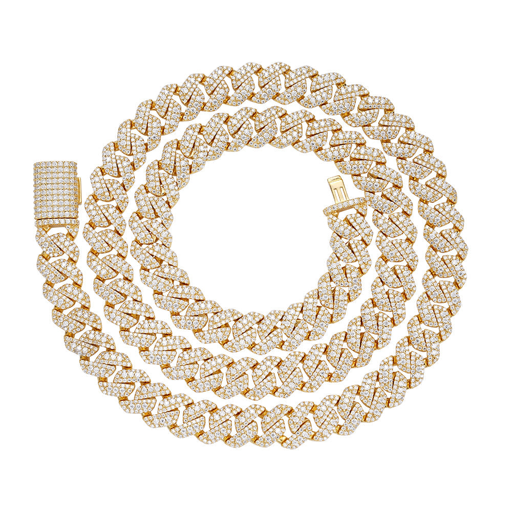 S.Silver Round Big Stone in Center Surrounded with Small Stones 10mm Moissanite Cuban Chain 22Inch Necklace GP 18-3/8 Cttw