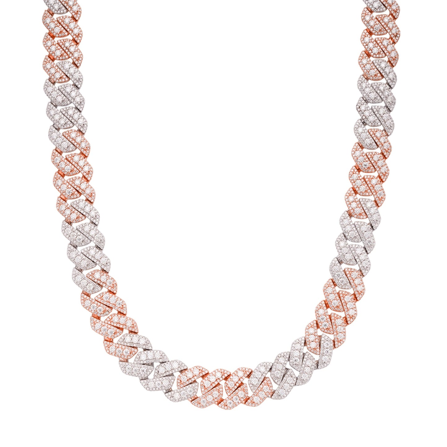 S.Silver Round Big Stone in Center Surrounded with Small Stones 14mm Moissanite Cuban Chain 22Inch Necklace RP+PP 34 Cttw