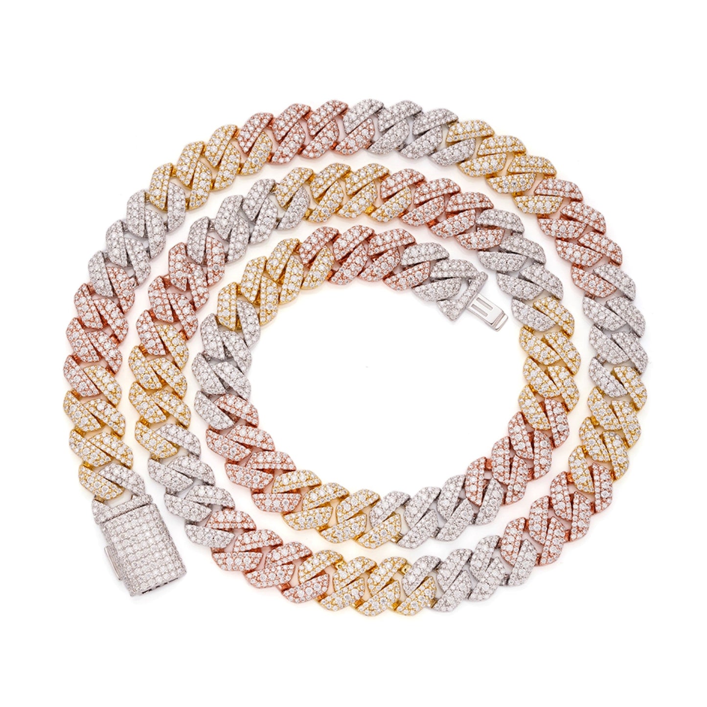 S.Silver Round Big Stone in Center Surrounded with Small Stones 10mm Moissanite Cuban Chain 22Inch Necklace RP+GP+PP 18-3/8 Cttw