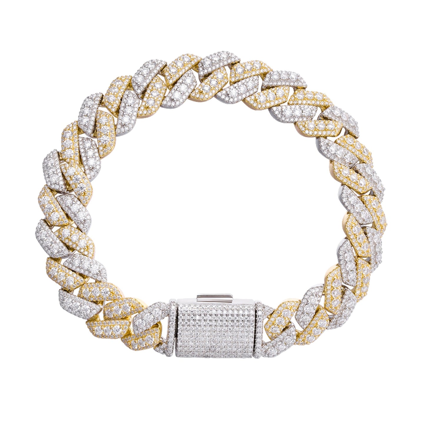 S.Silver Round Big Stone in Center Surrounded with Small Stones 12mm Moissanite Cuban Chain 8Inch Bracelet RP+GP 10-7/8 Cttw