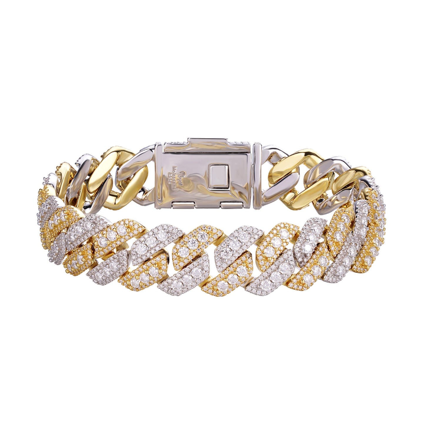 S.Silver Round Big Stone in Center Surrounded with Small Stones 14mm Moissanite Cuban Chain 8Inch Bracelet RP+GP 12-3/4 Cttw